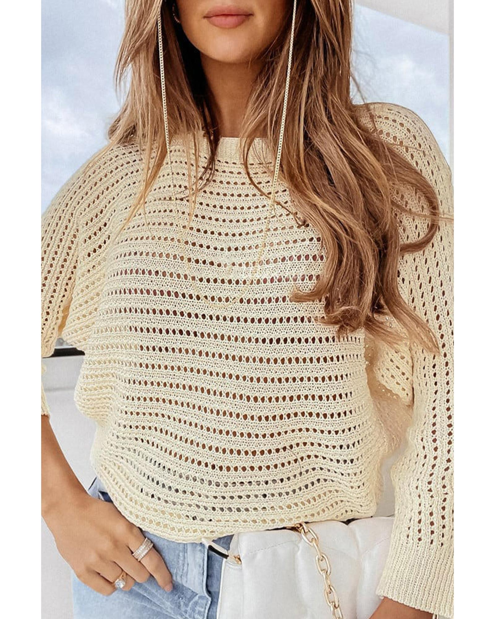 Apricot Open Knit Bracelet Sleeve Sweater – S