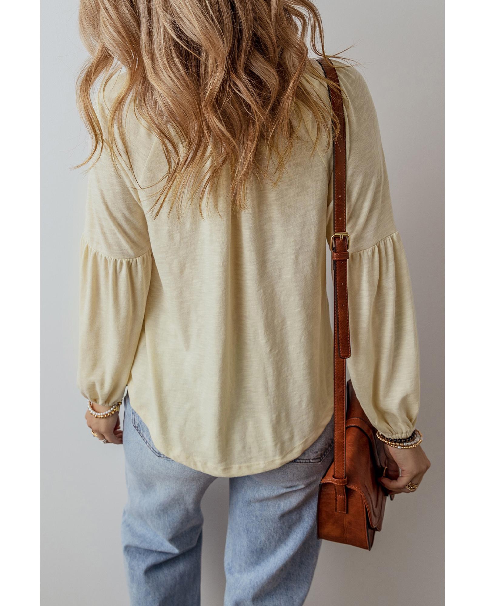 Beau Blue Floral Embroidered Puff Sleeve Split Neck Blouse - XL