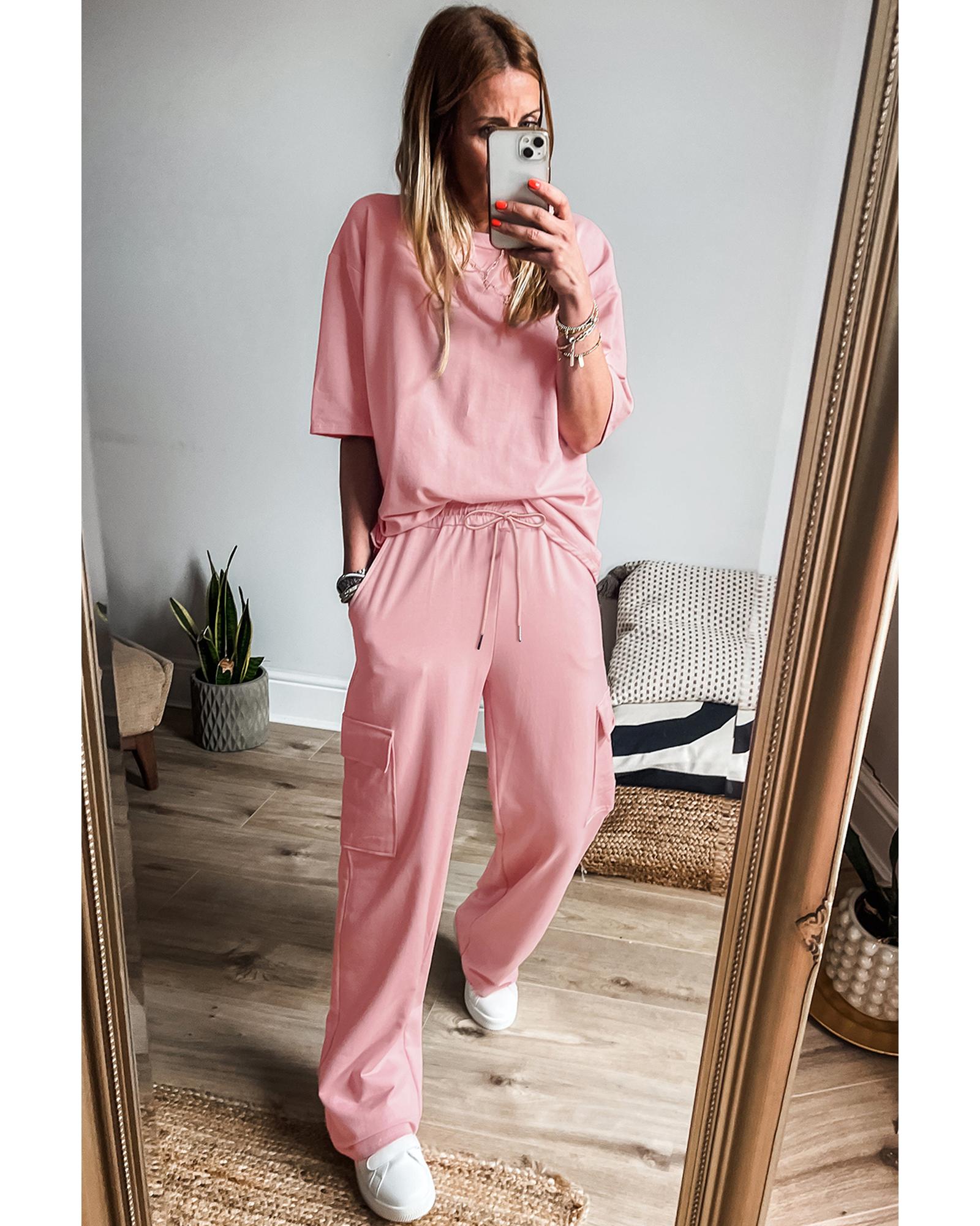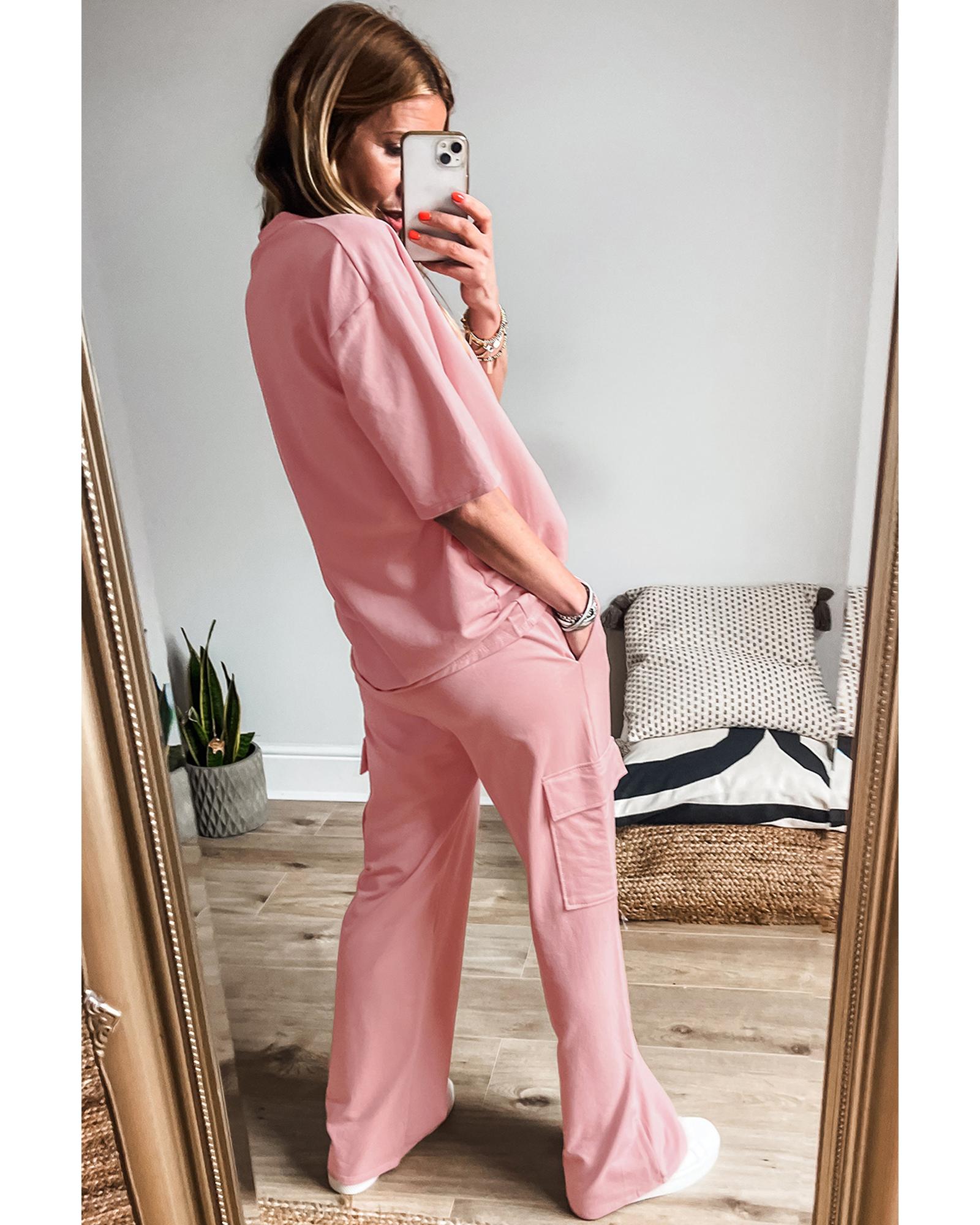 Apricot Pink Half Sleeve T-Shirt & Cargo Sweatpants Set – M