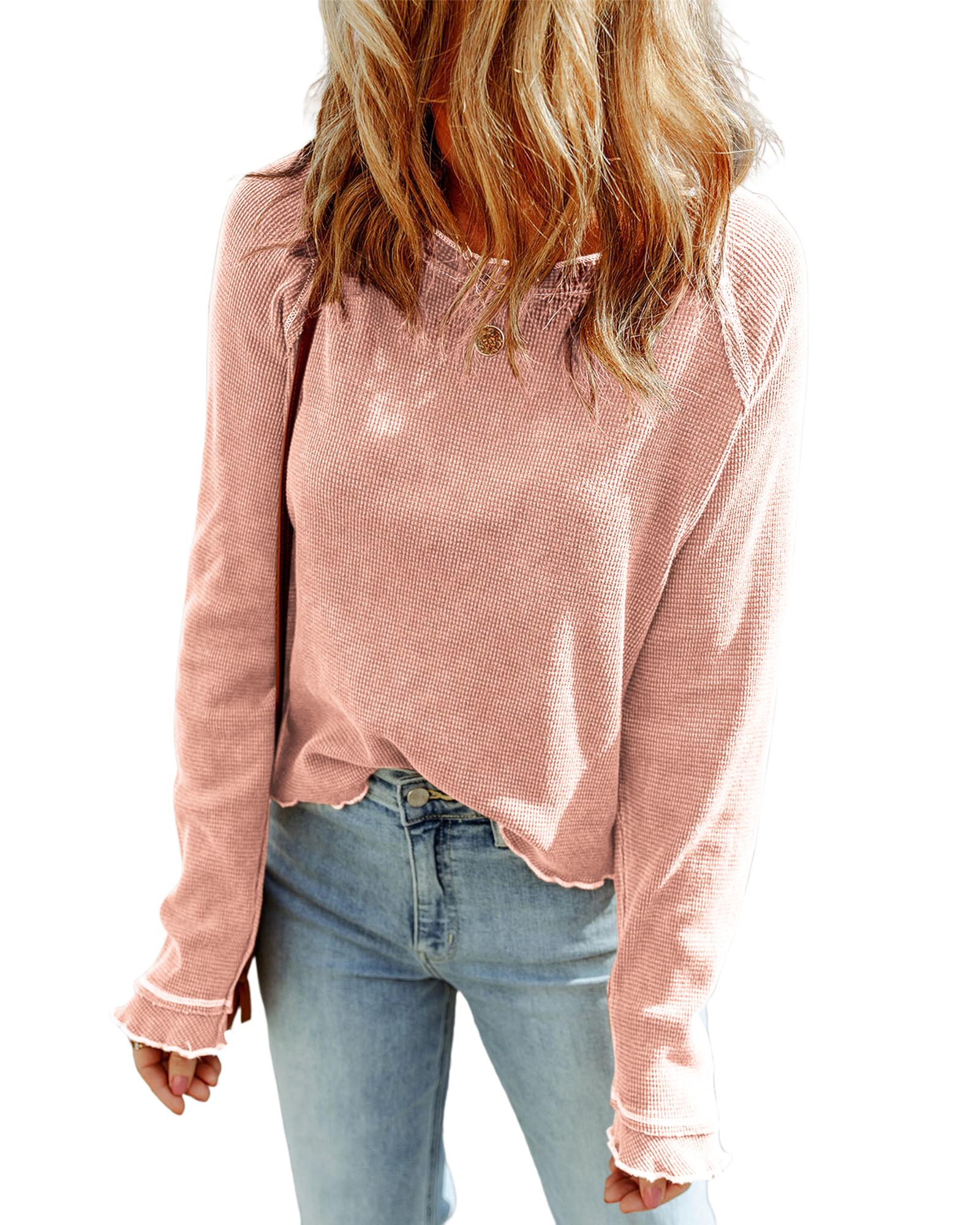 Apricot Pink Textured Round Neck Long Sleeve Top – XS