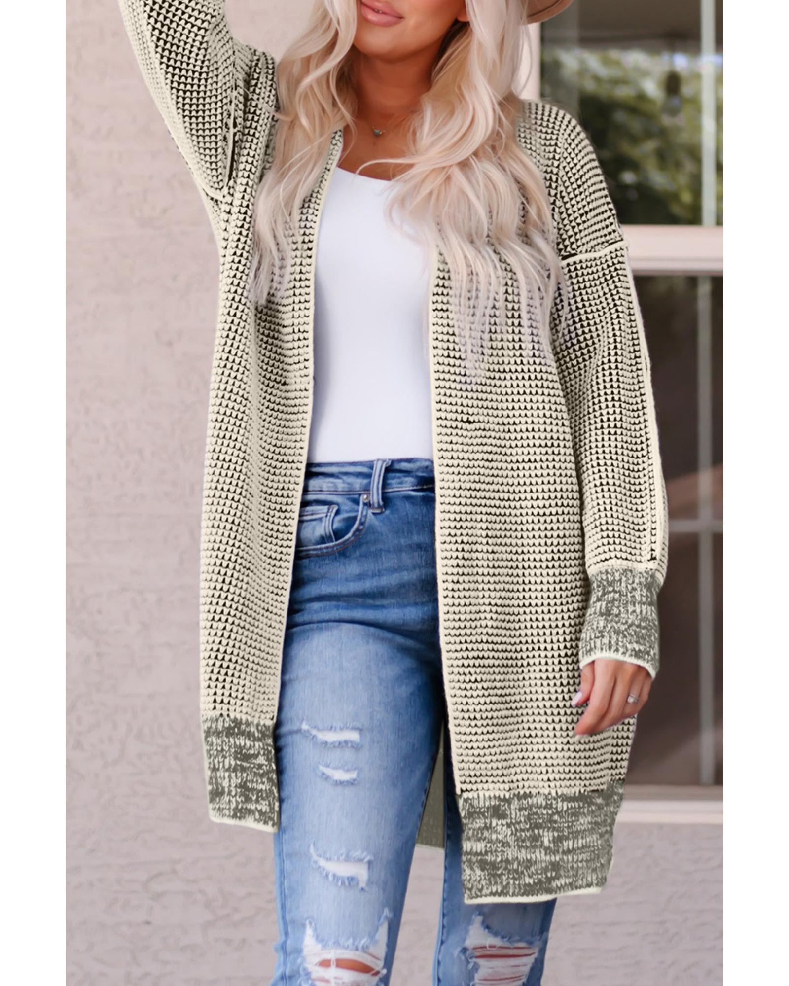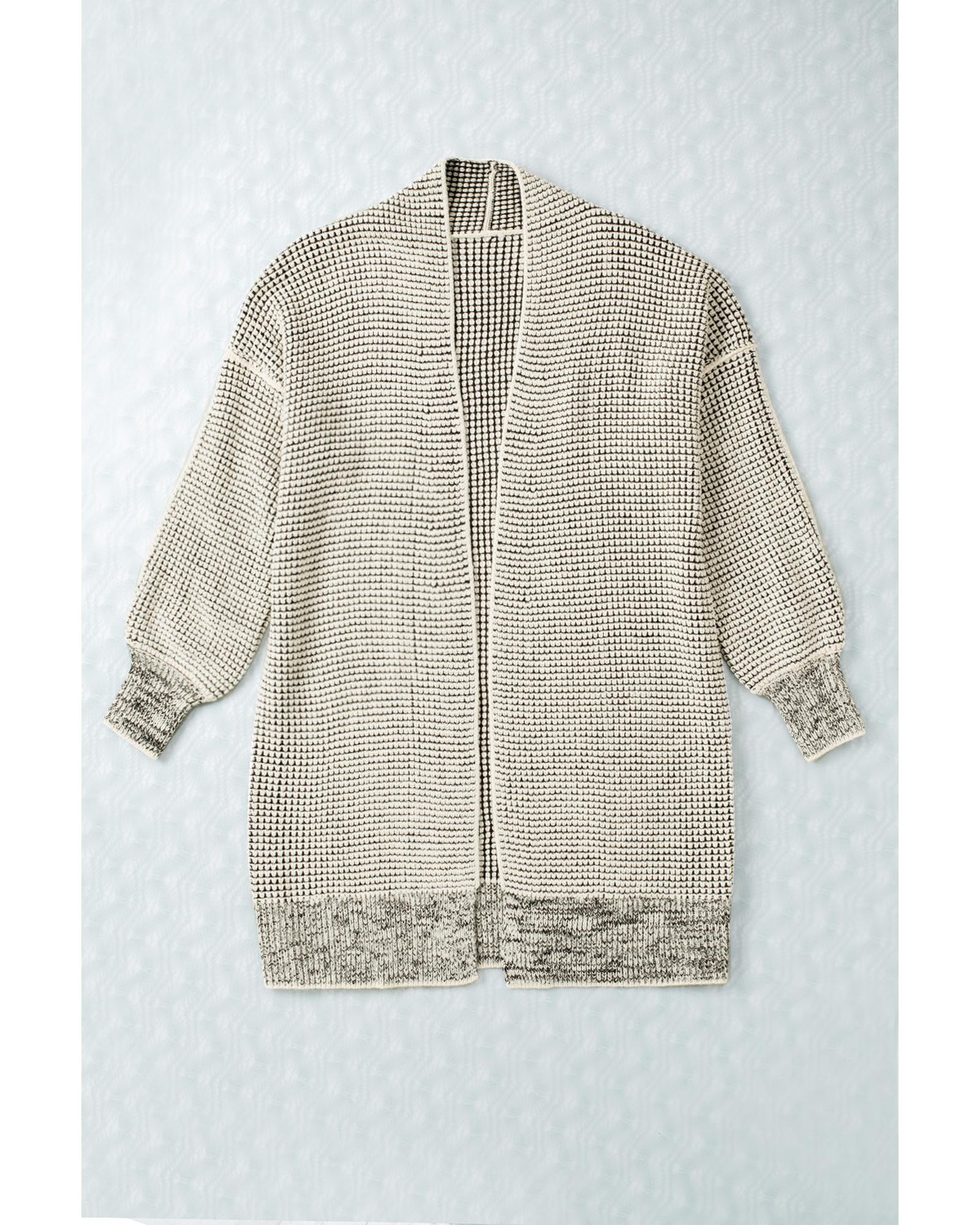 Apricot Plaid Knitted Long Open Front Cardigan – S