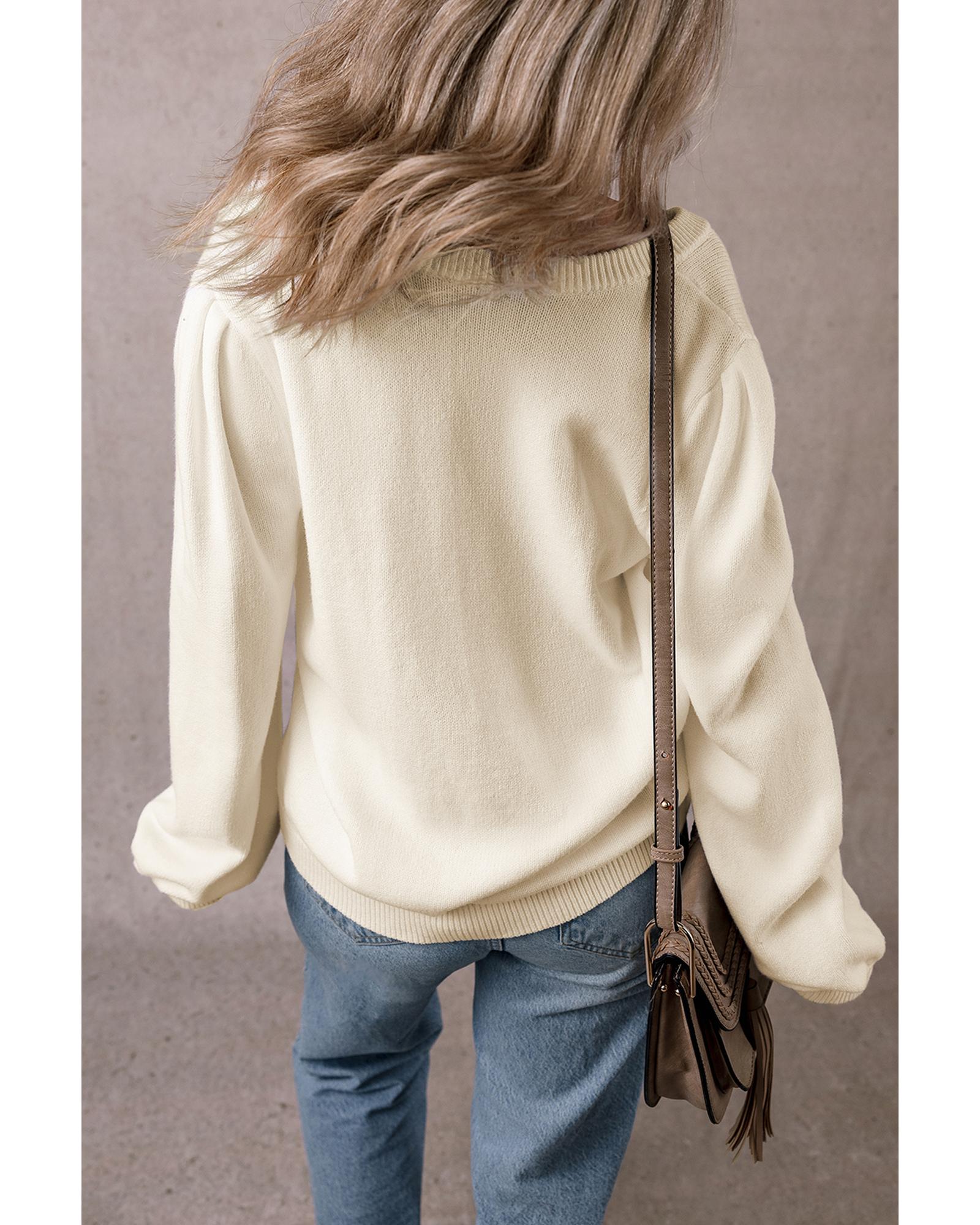 - Apricot pleated sleeve hollow detail button sweater cardigan