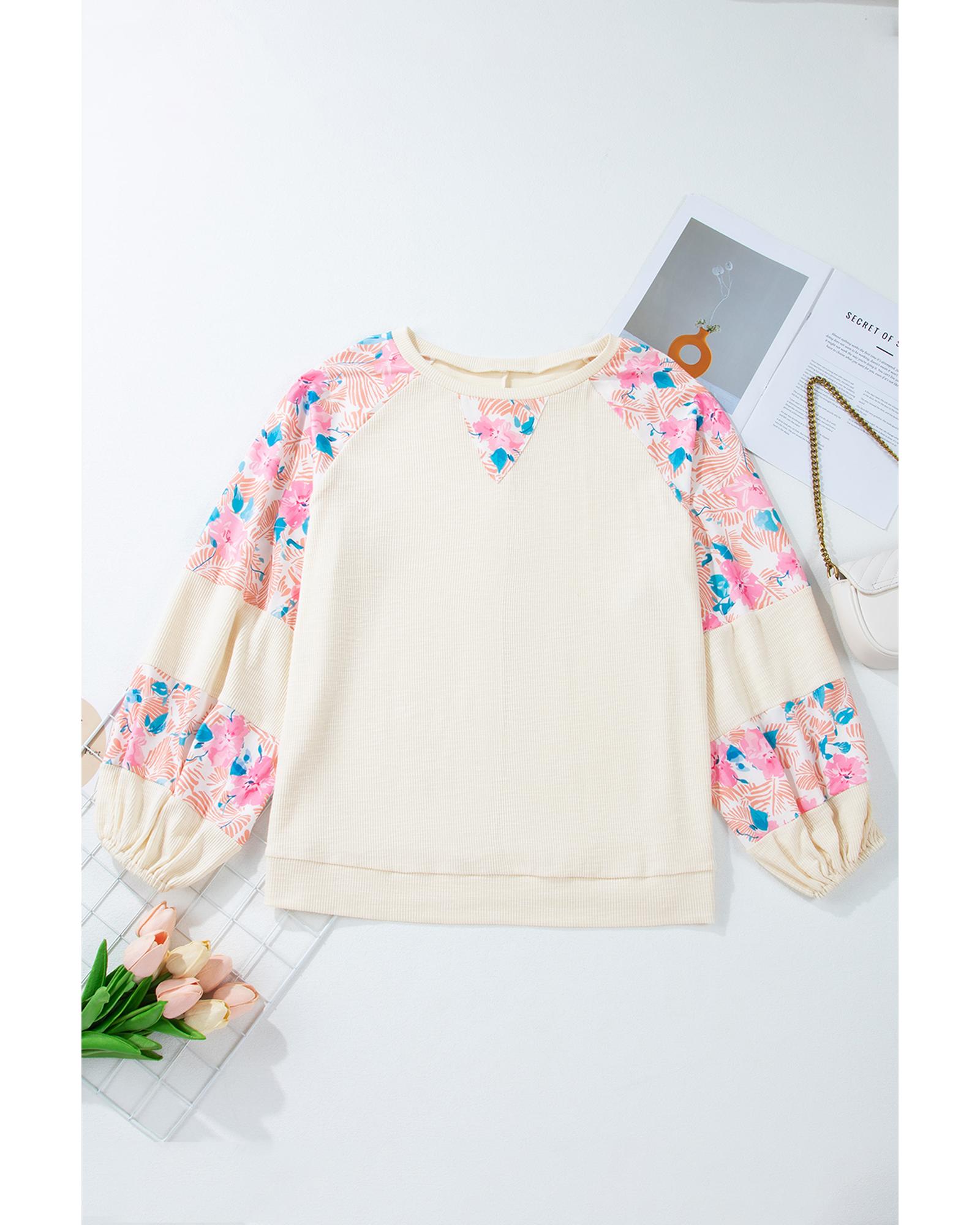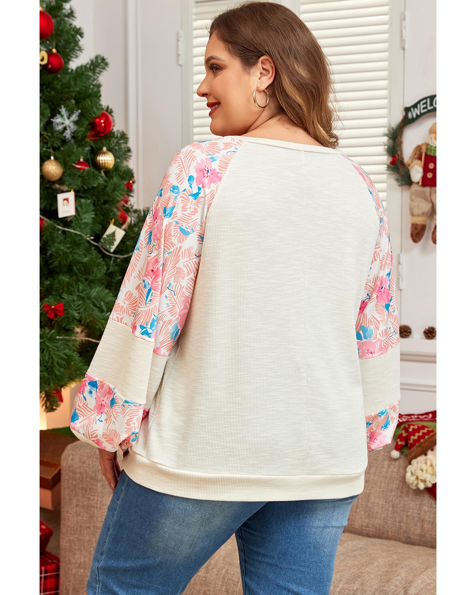 Apricot Plus Size Floral Patchwork Ribbed Puff Sleeve Top – 3X