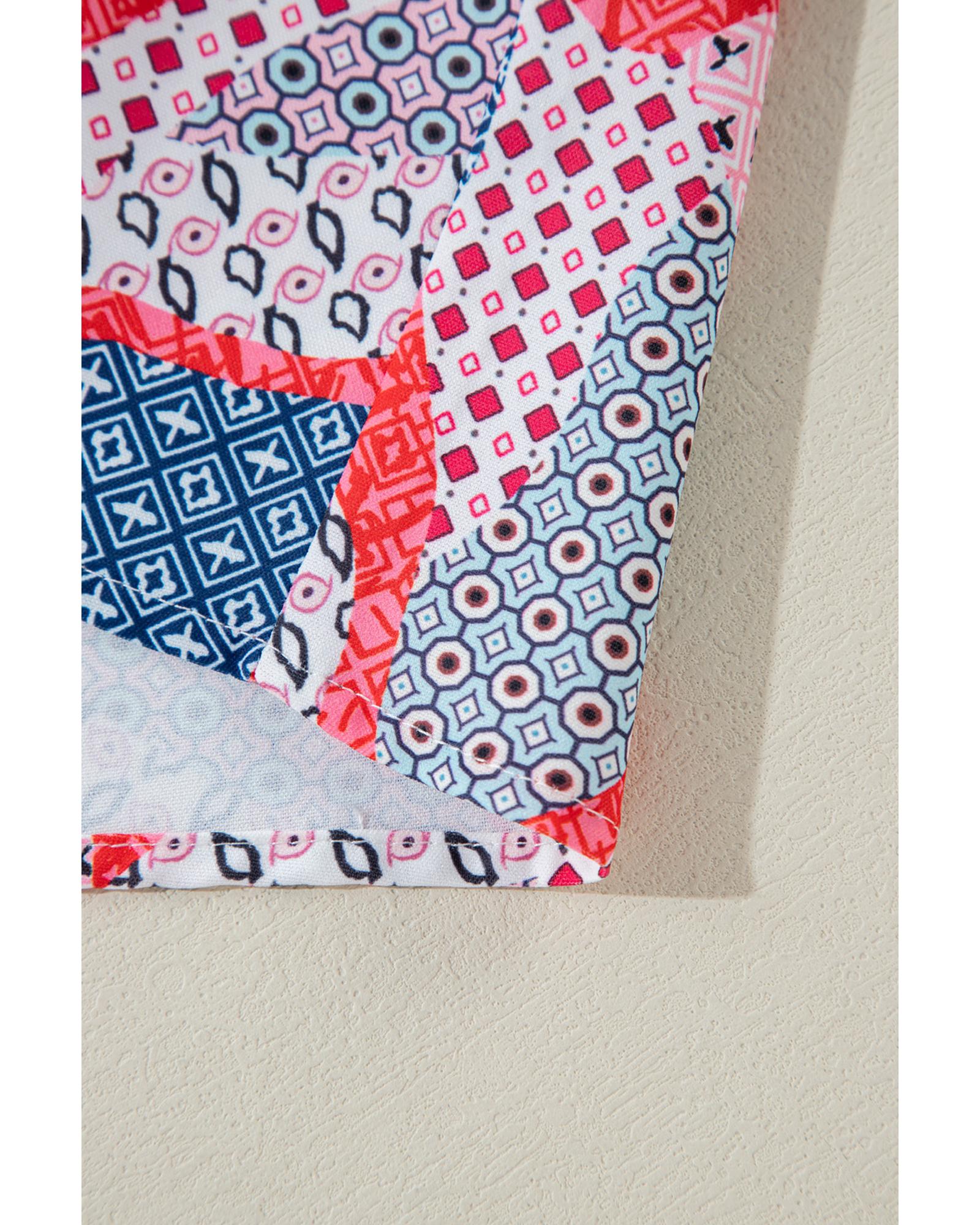 Apricot Plus Size Printed Patchwork Textured Buttoned Blouse – 1X