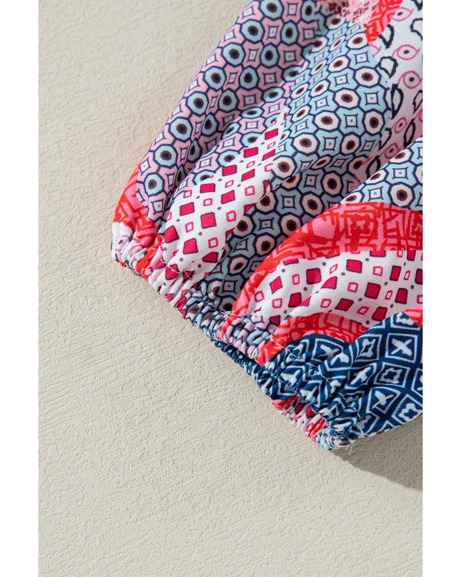 Apricot Plus Size Printed Patchwork Textured Buttoned Blouse – 3X