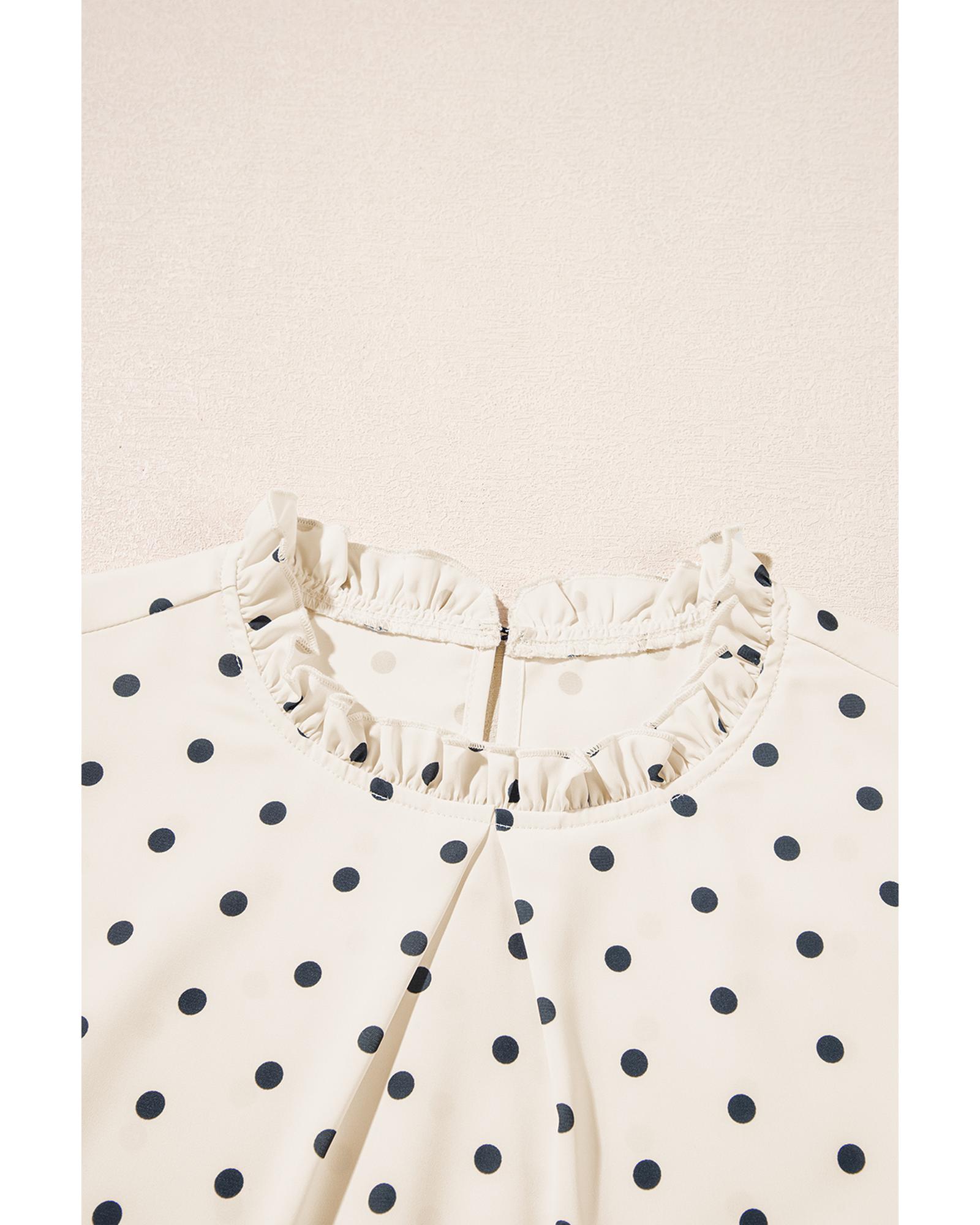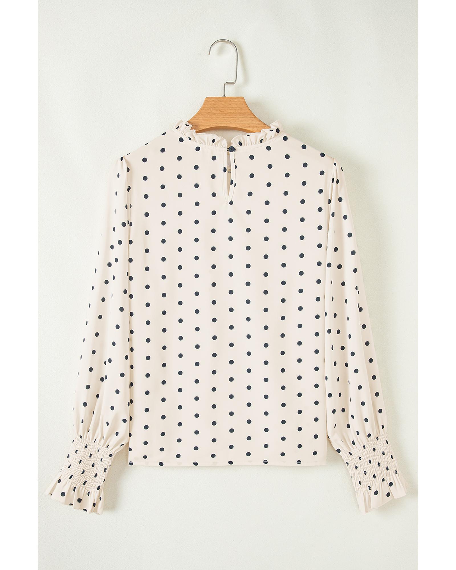 Apricot Polka Dot Print Frilled Collar Lantern Sleeve Blouse – M