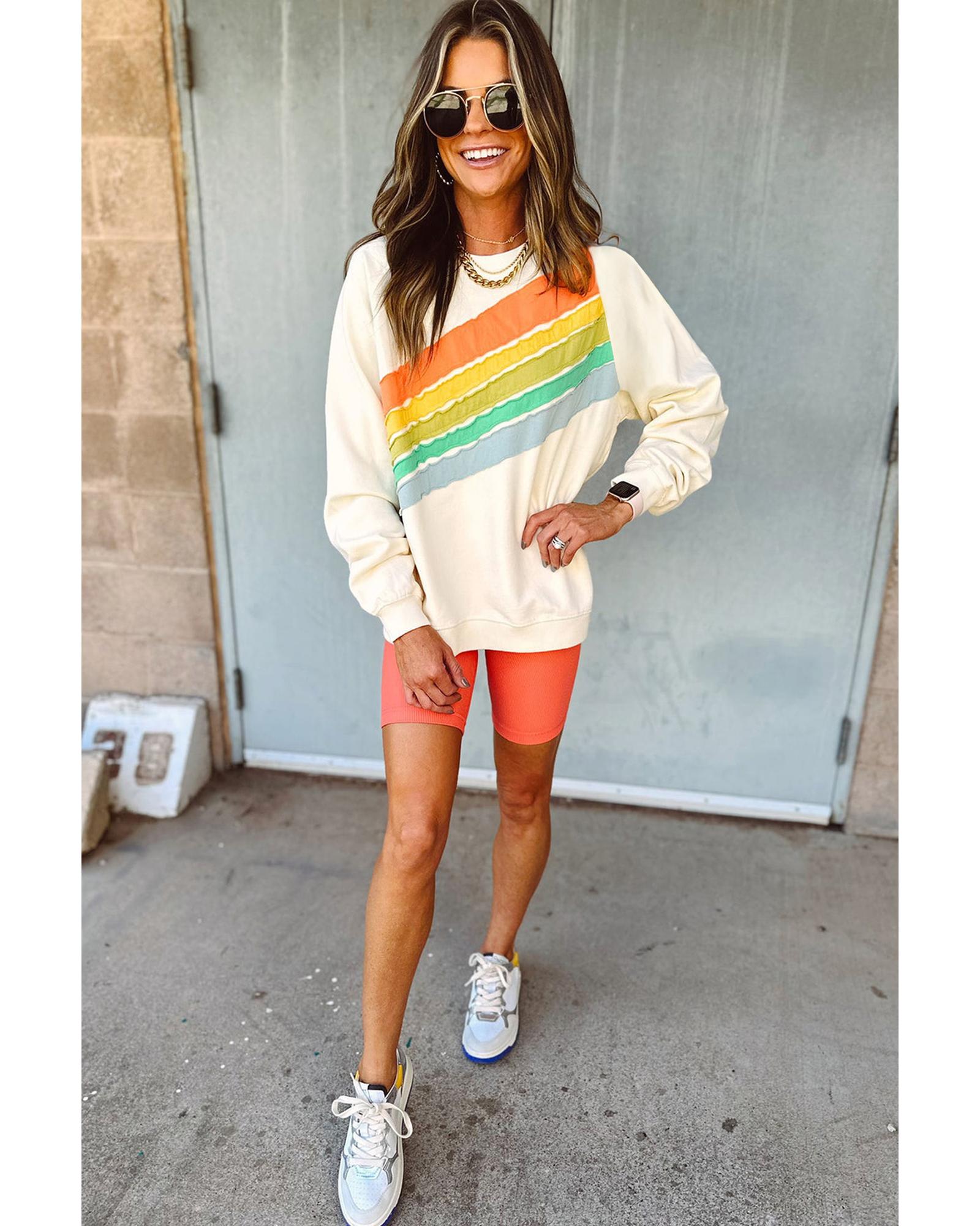 Apricot Rainbow Colorblock Striped Pullover Sweatshirt – M