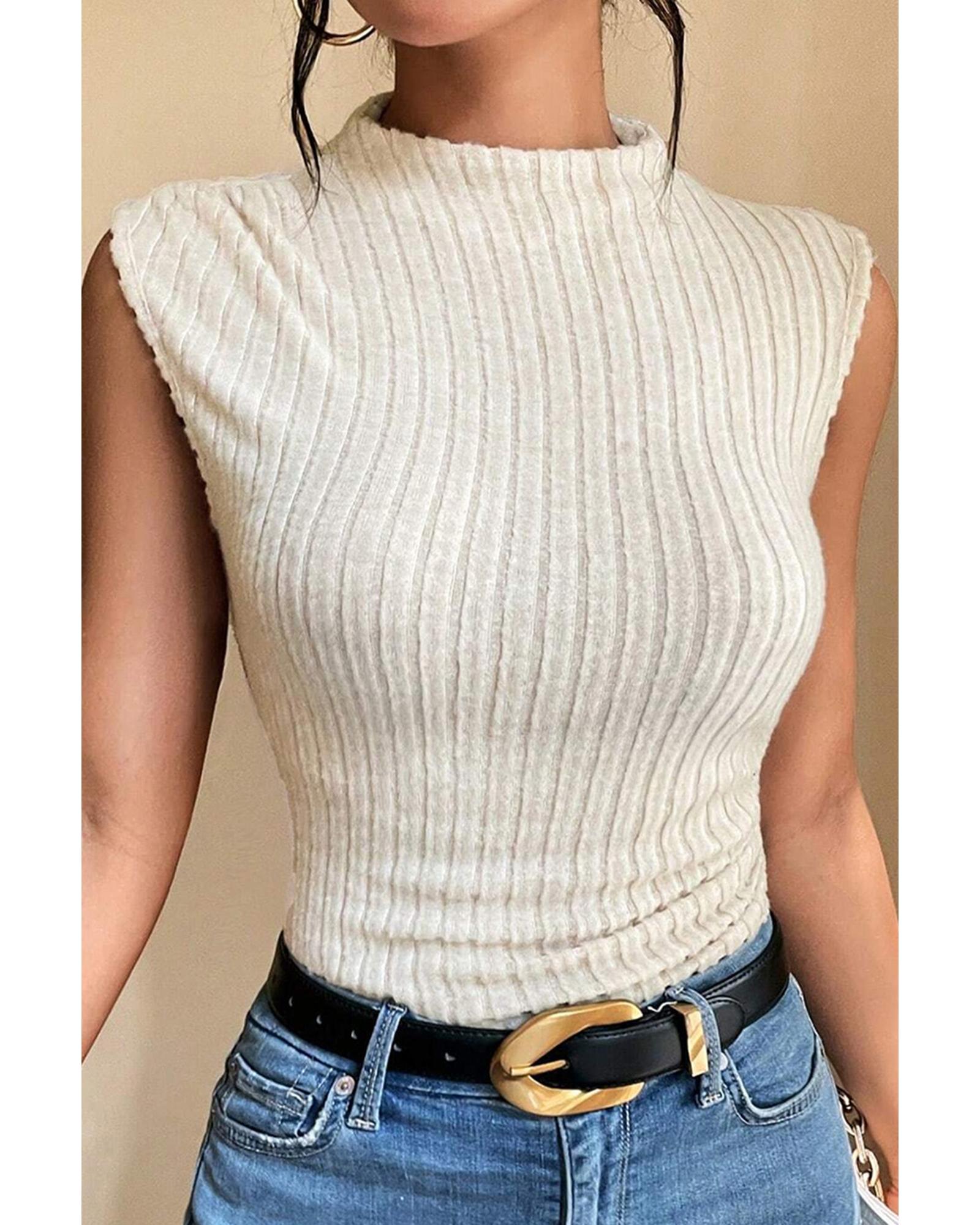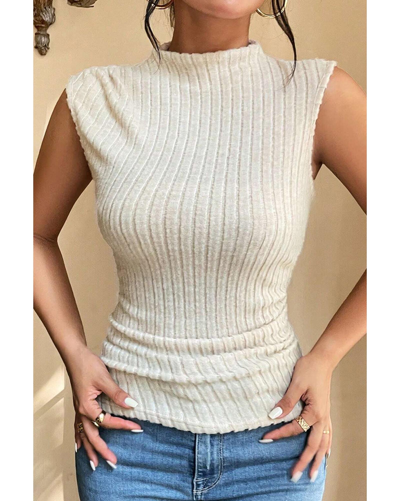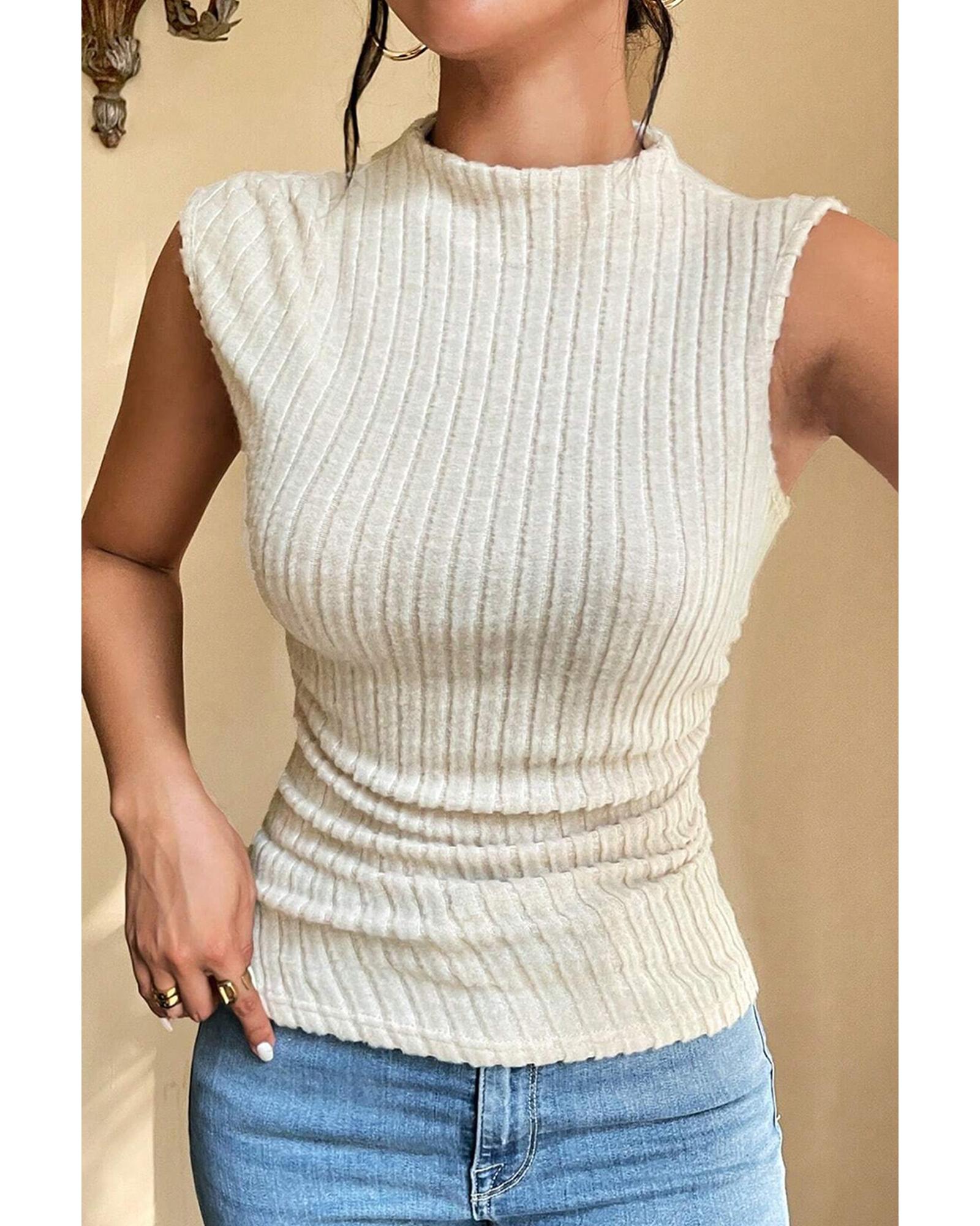 Apricot Ribbed Knit Mock Neck Tank Top – L