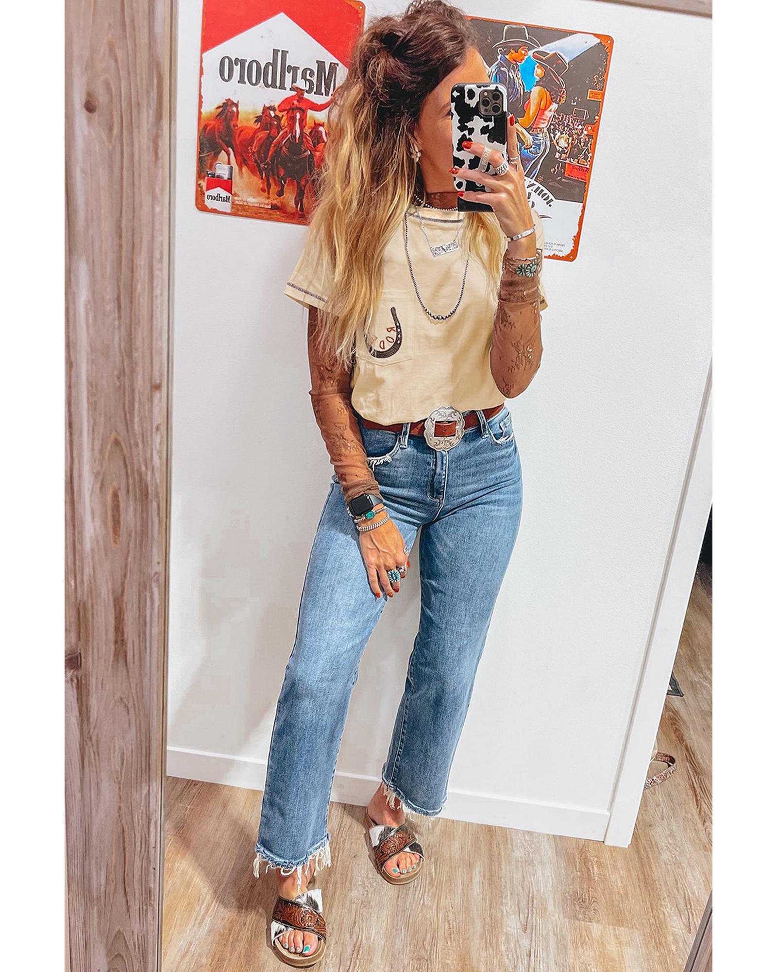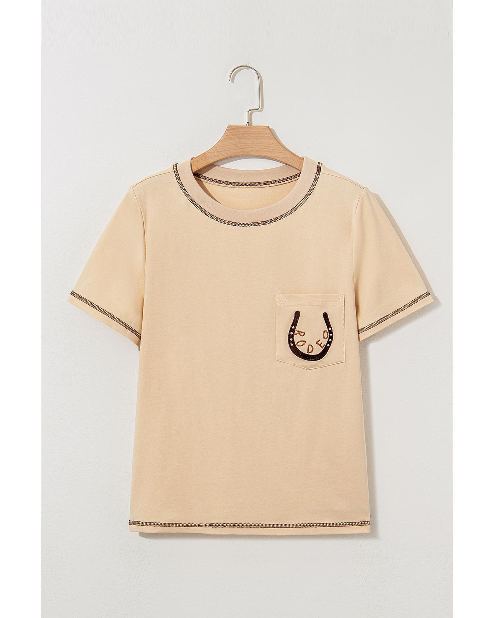 Apricot RODEO Horseshoe Embroidered Patch Pocket T Shirt – L