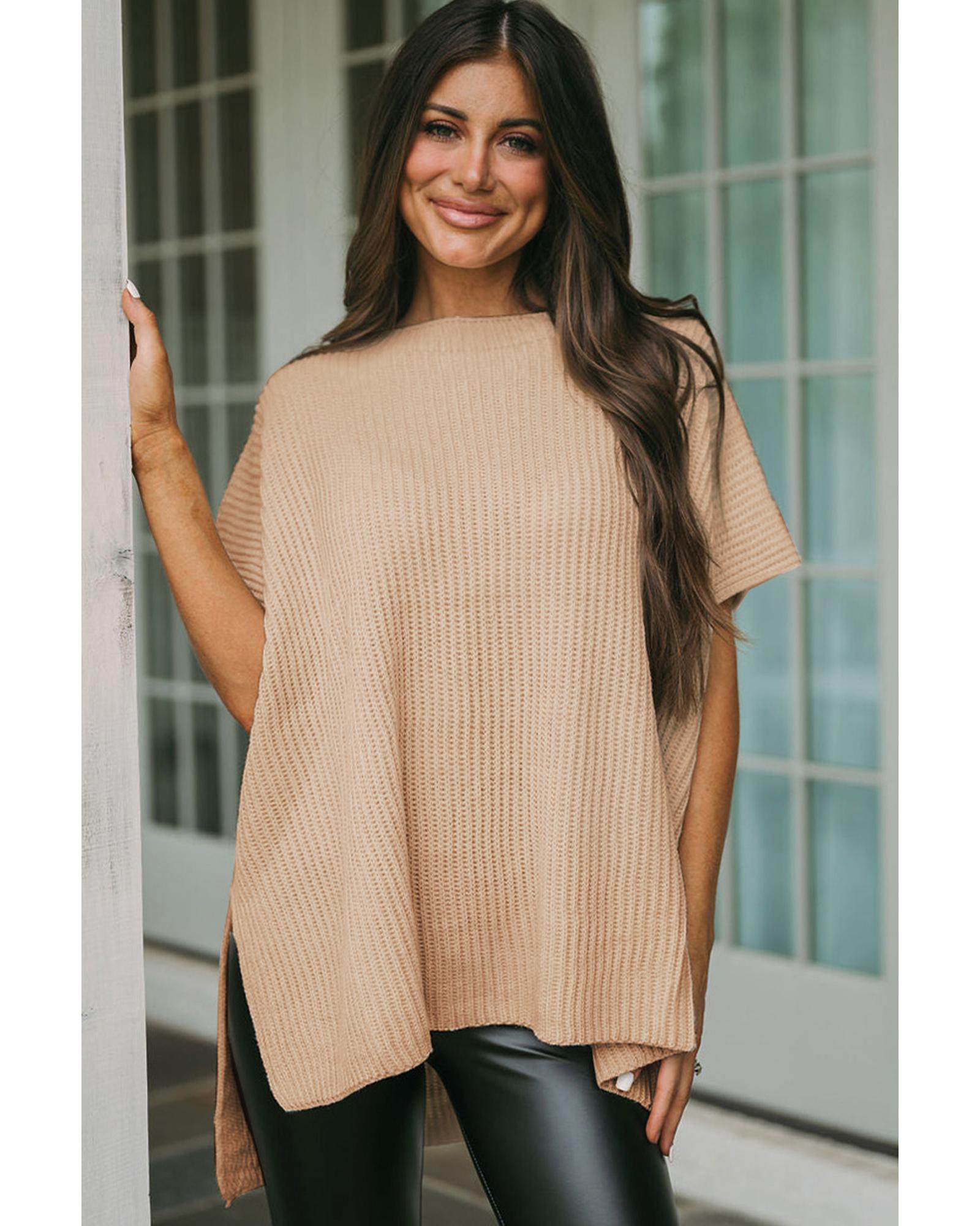 Apricot Short Sleeve Side Slit Oversized Sweater – S