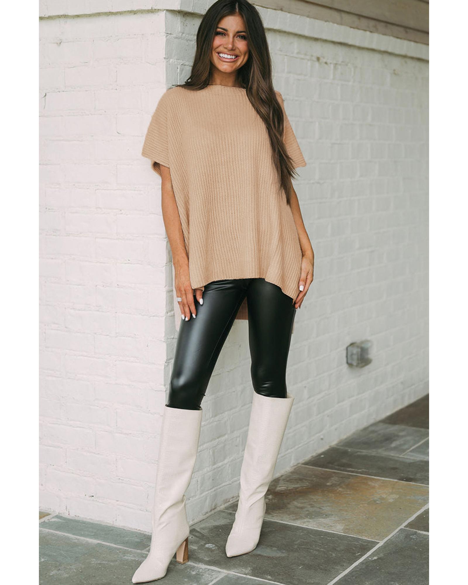 Apricot Short Sleeve Side Slit Oversized Sweater – XL