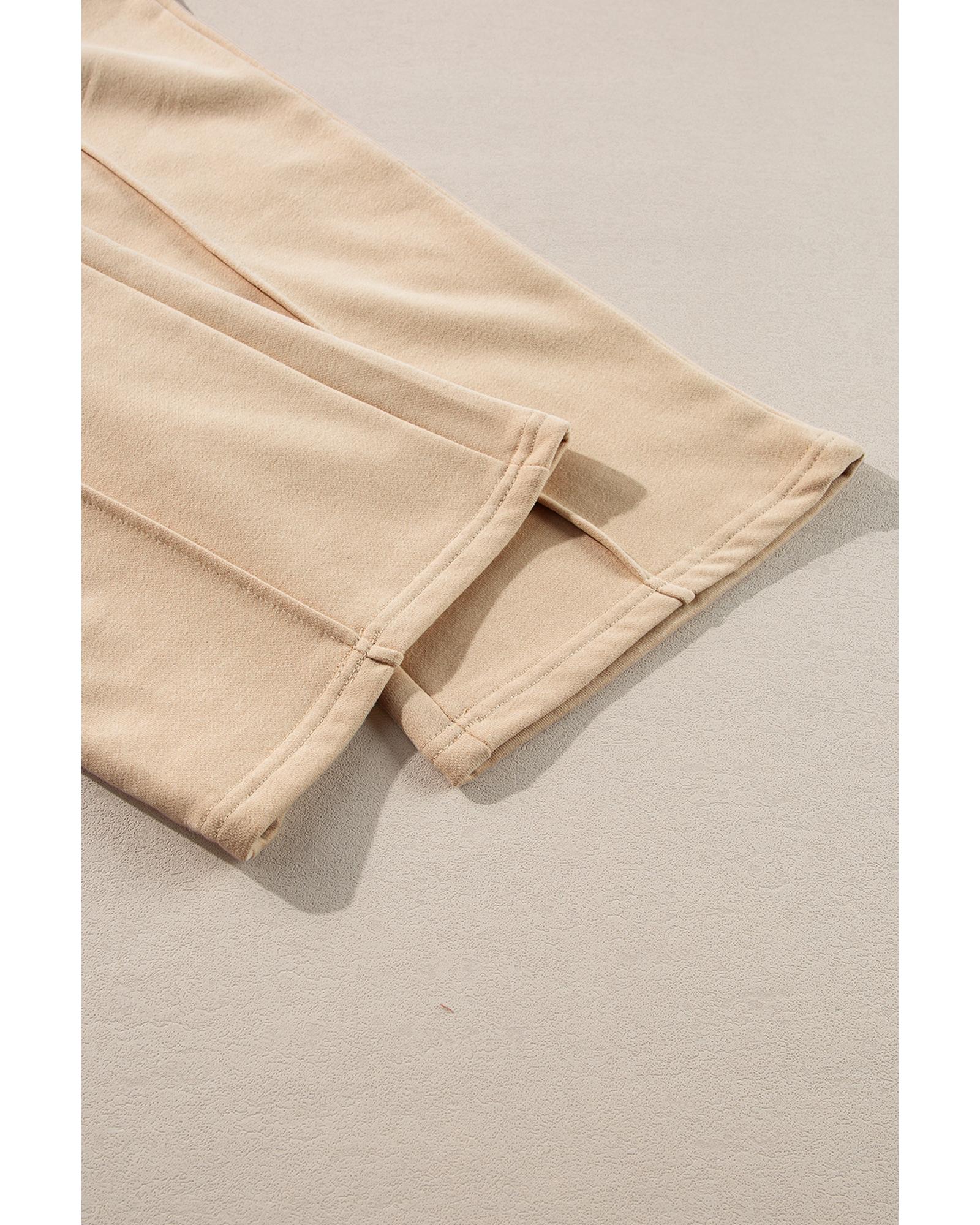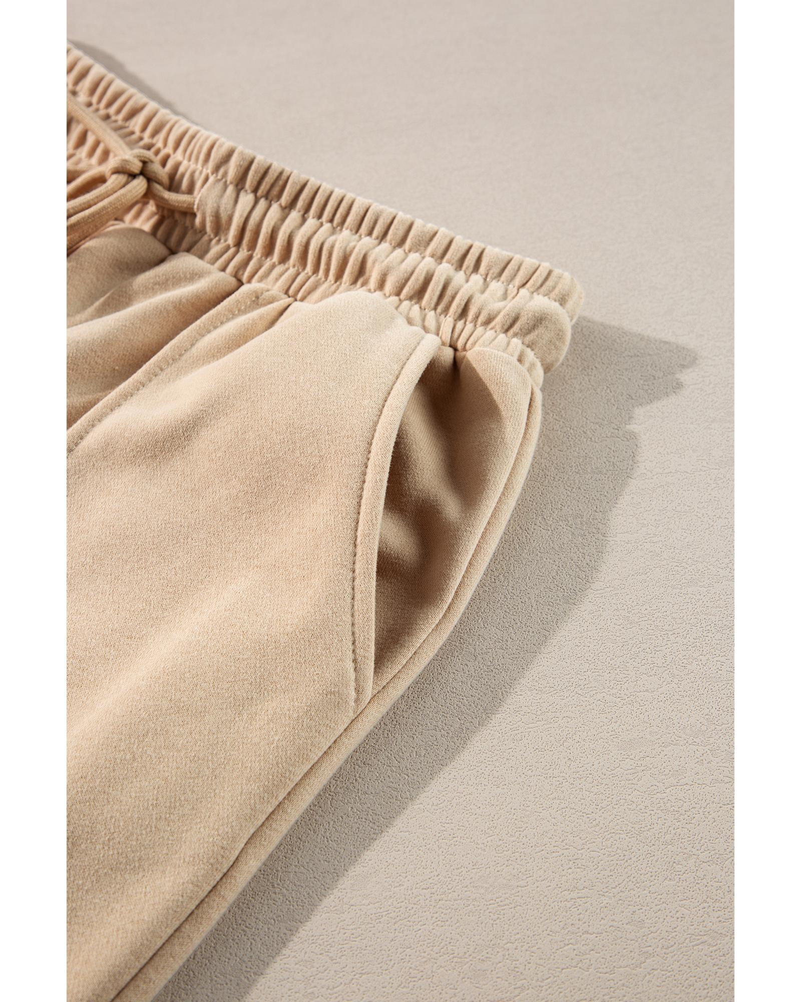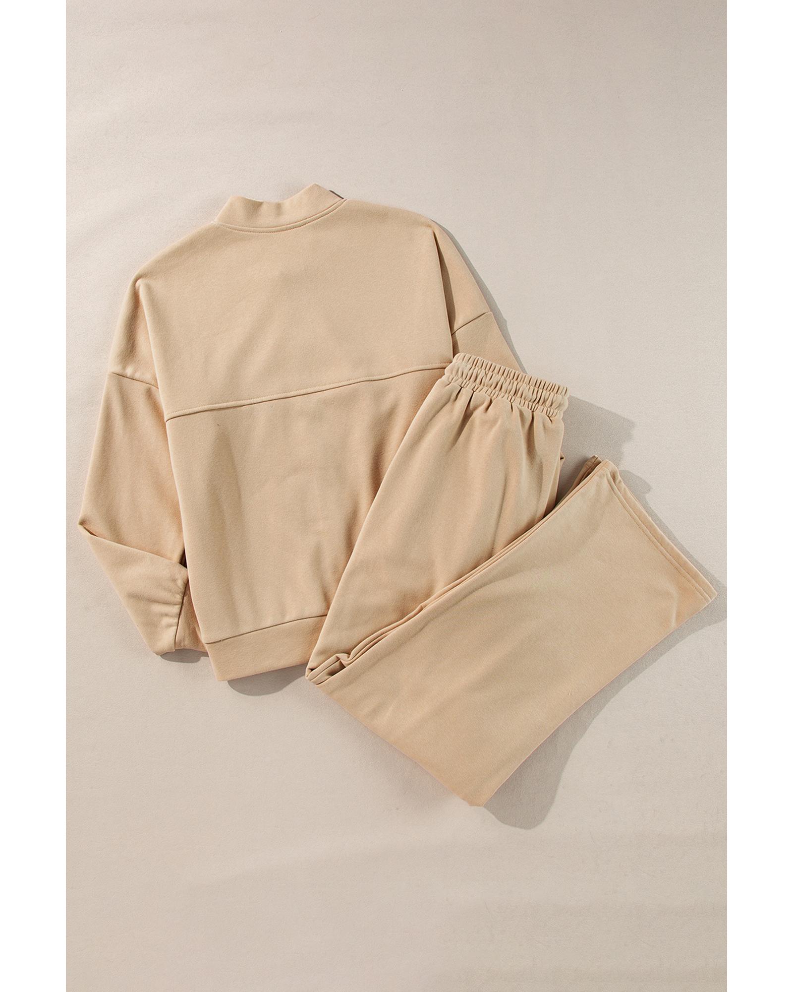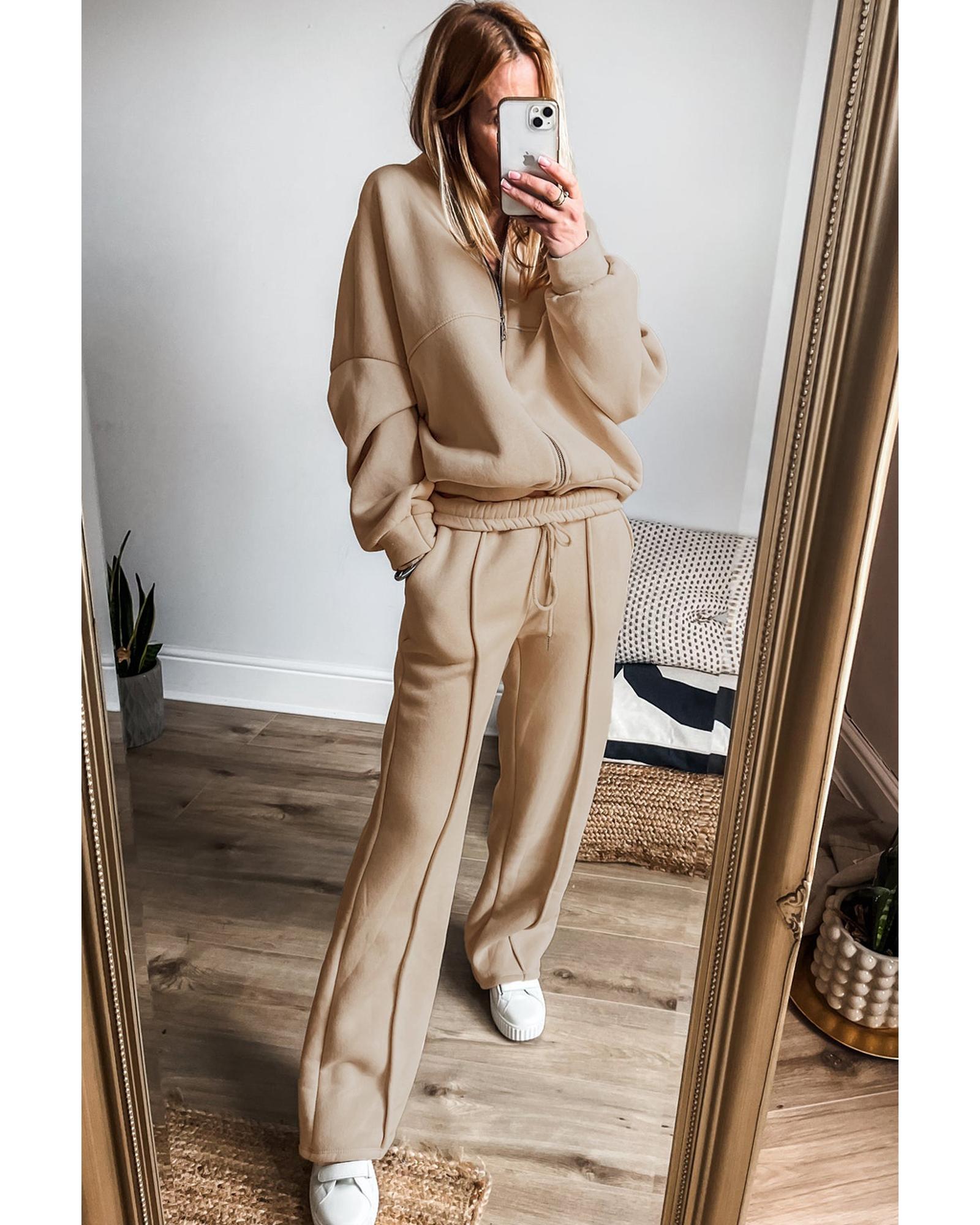 Apricot Solid Seamed Zipper Jacket and Drawstring Waist Pants Set – L