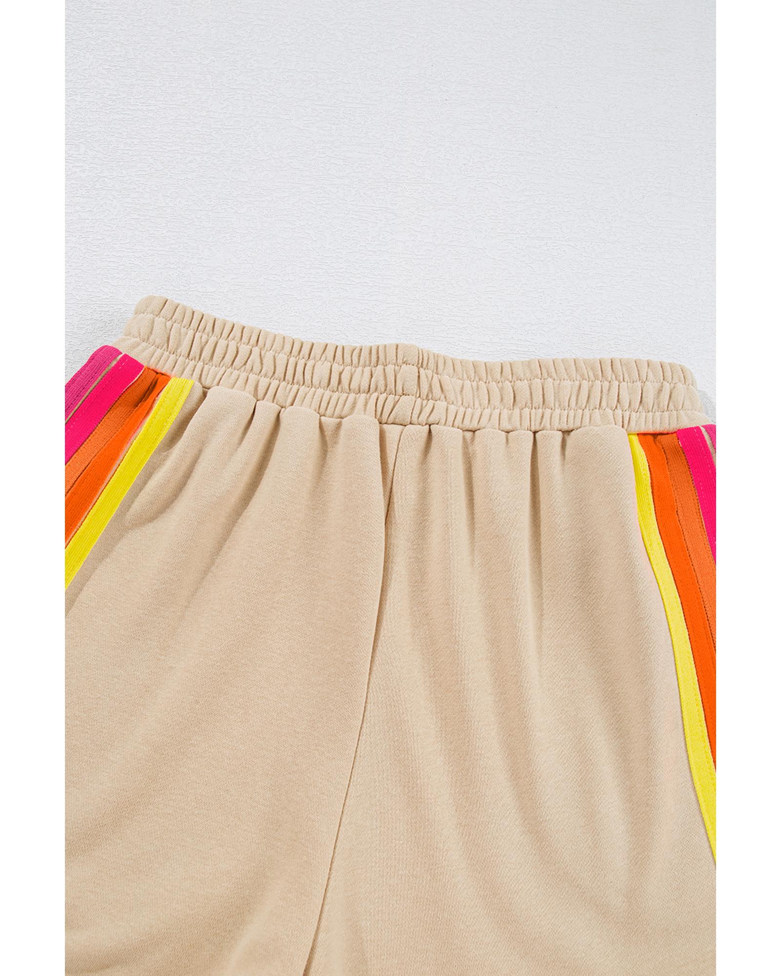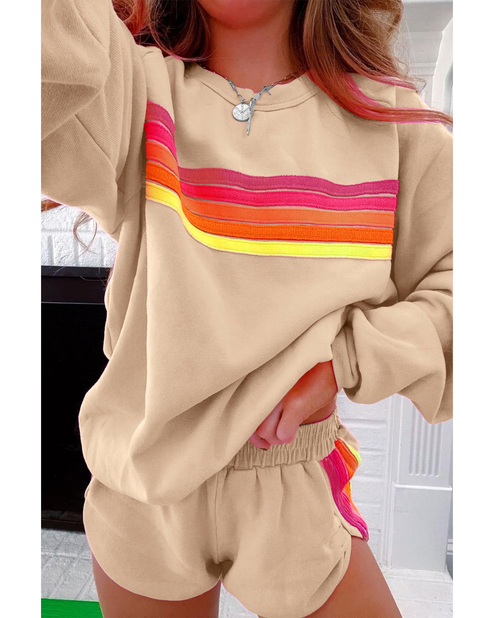 Apricot Striped Accent Pullover and Shorts Two Piece Casual Set - XL