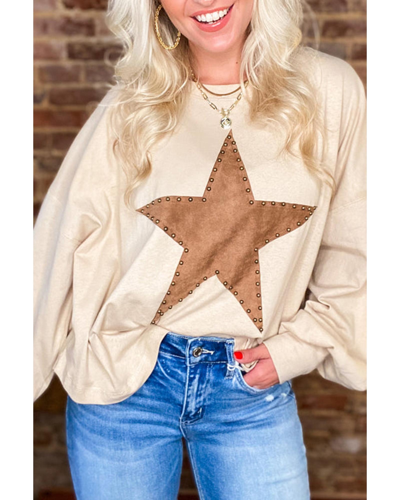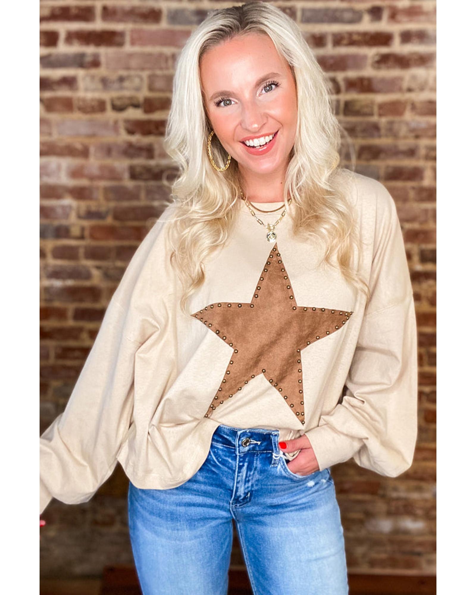 - Apricot Studded Star Graphic Oversized Long Sleeve Top