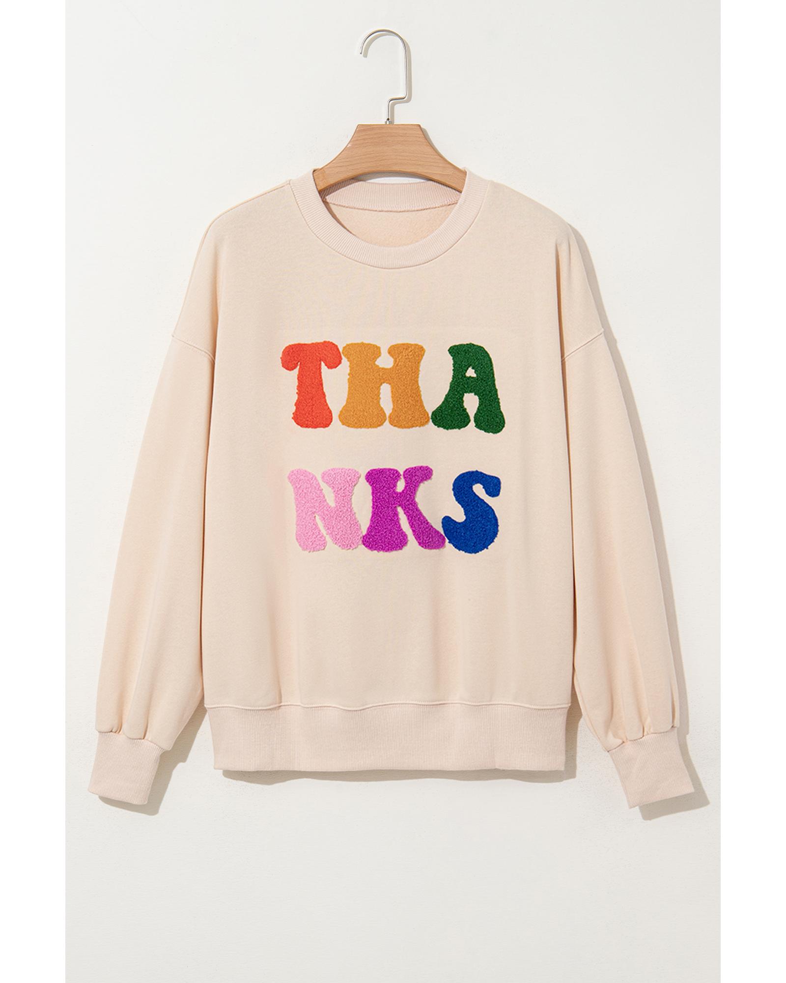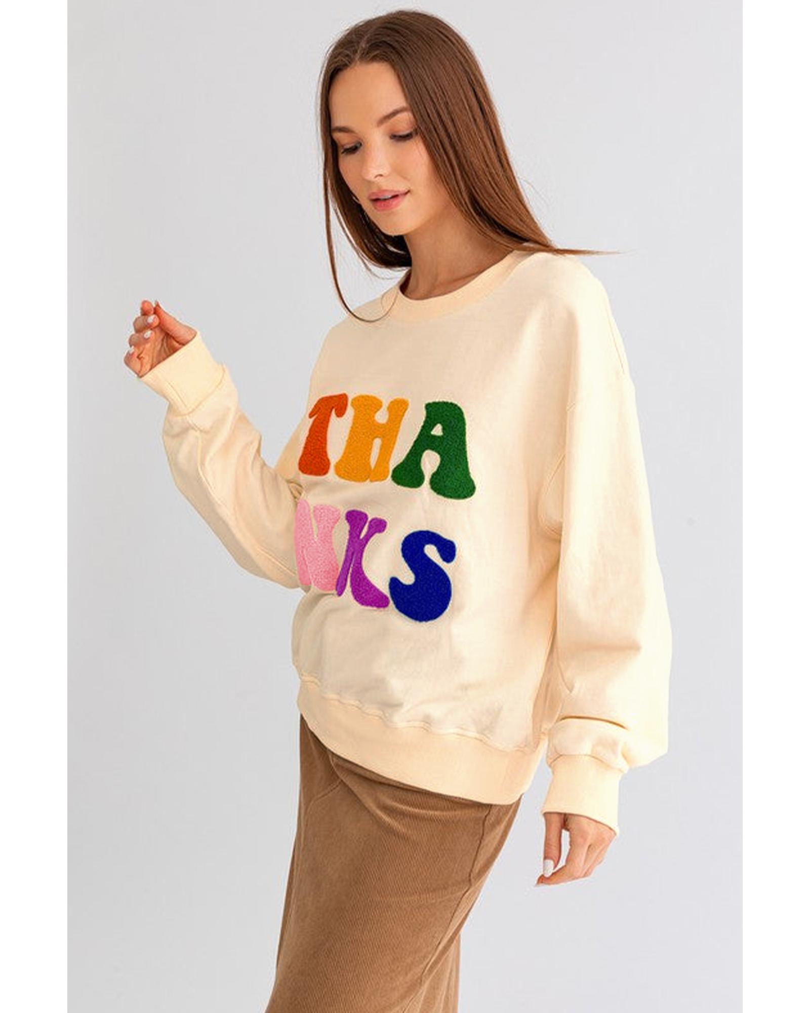 Apricot THANKS Chenille Embroidered Drop Shoulder Graphic Sweatshirt – L