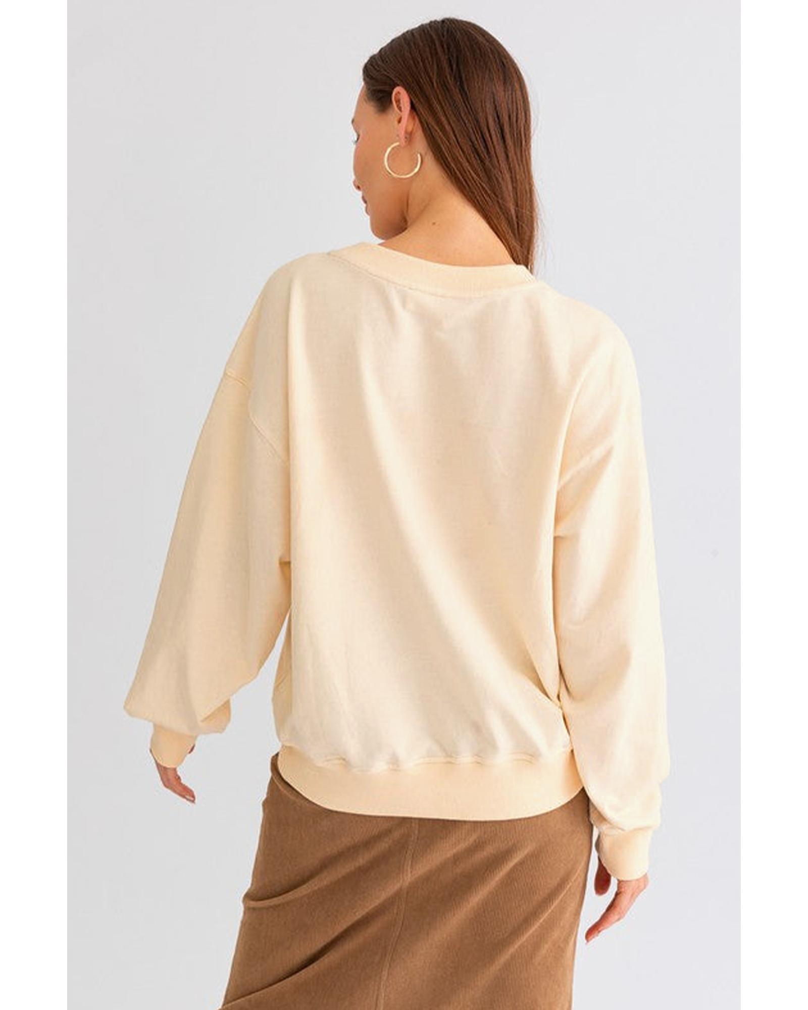 Apricot THANKS Chenille Embroidered Drop Shoulder Graphic Sweatshirt – M