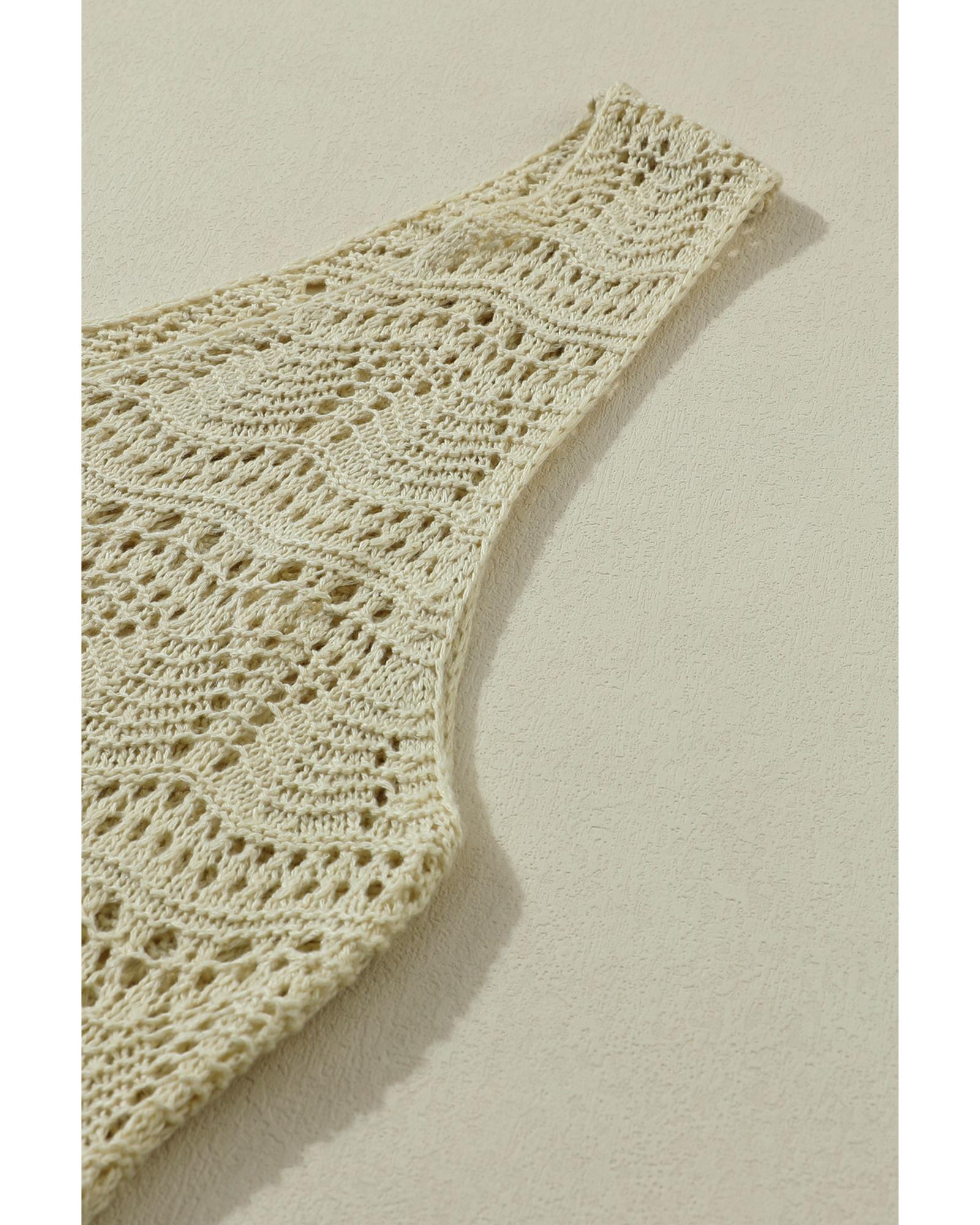 Apricot V Neck Textured Hollow-out Sweater Vest – XL