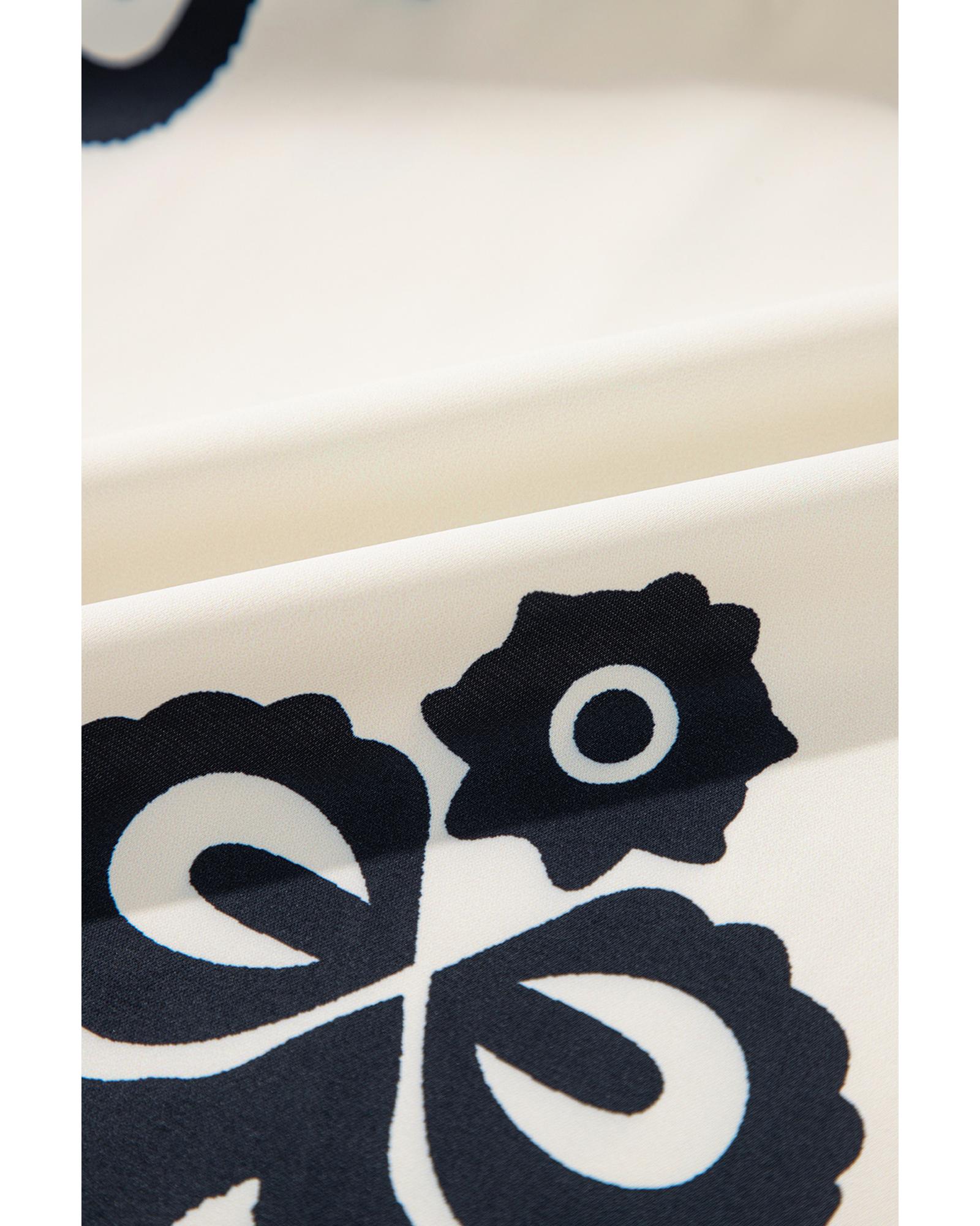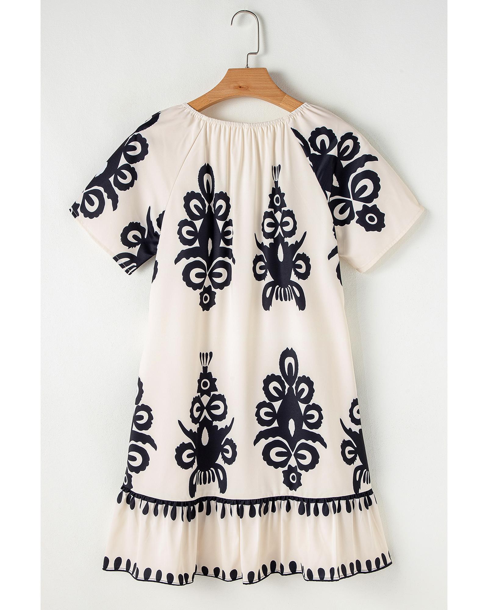 Apricot Western Print Ruffled Short Sleeve Loose Dress – S