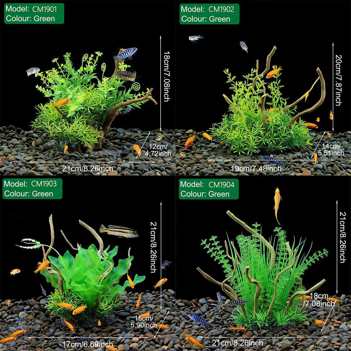 Aquarium Landscaping Decoration Artificial Wood and Plants Fish Tank Ornament – CM1904-Green