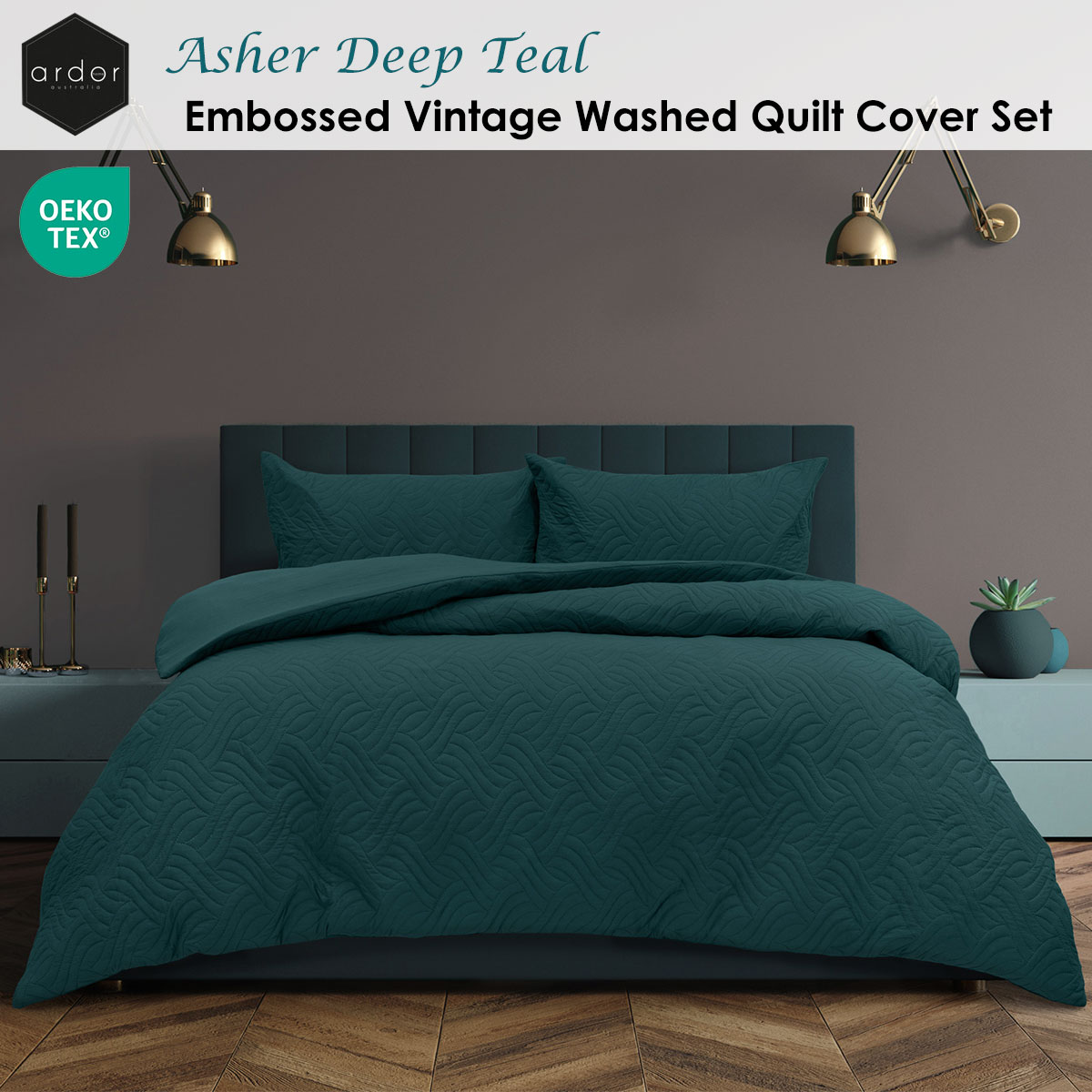 Ardor Asher Deep Teal Embossed Vintage Washed Quilt Cover Set King