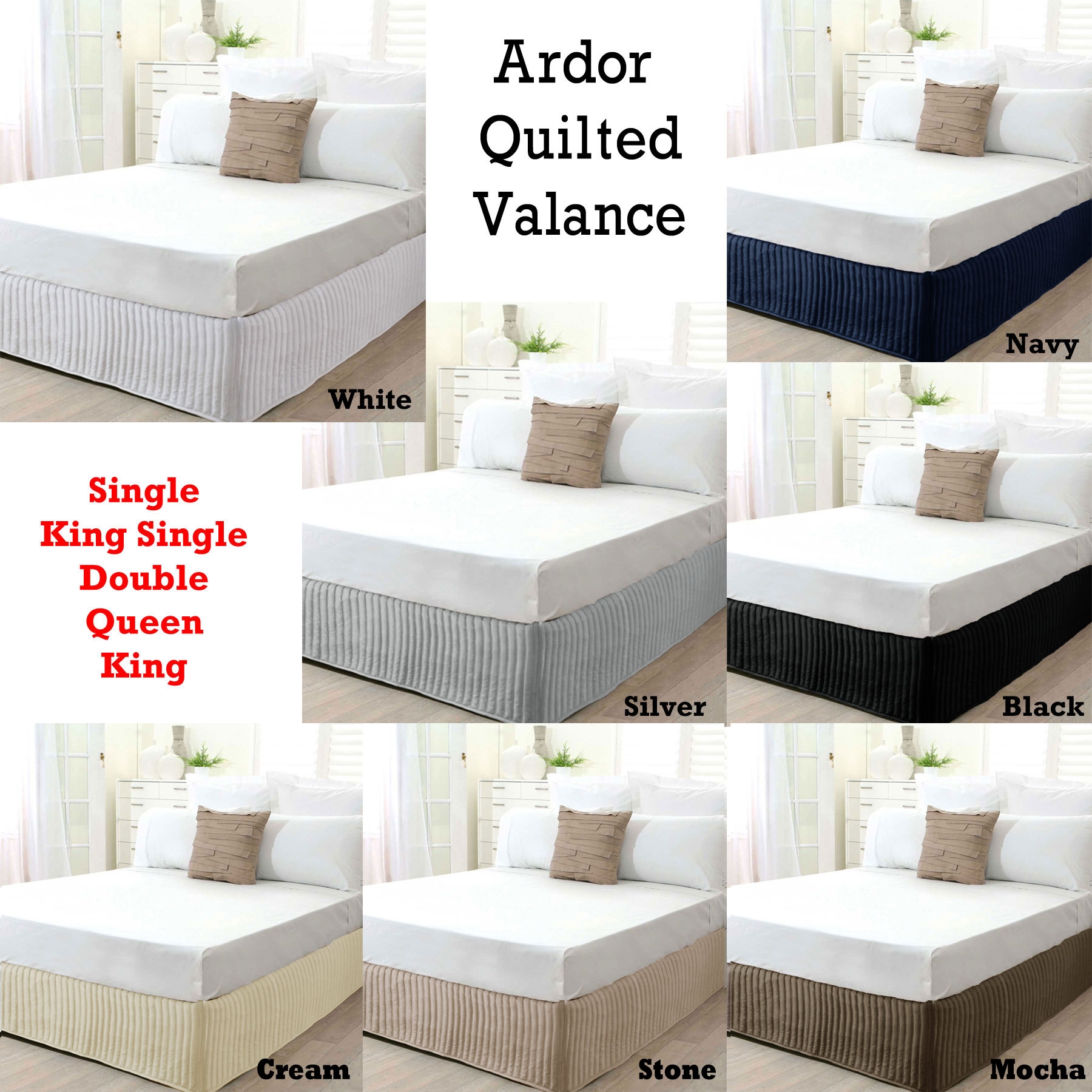 Accessorize your bed with this quilted valance by Ardor featuring a clean, solid-colour design that will look great with almost any bedding made from microfibre polyester which is machine machine for easy care.
