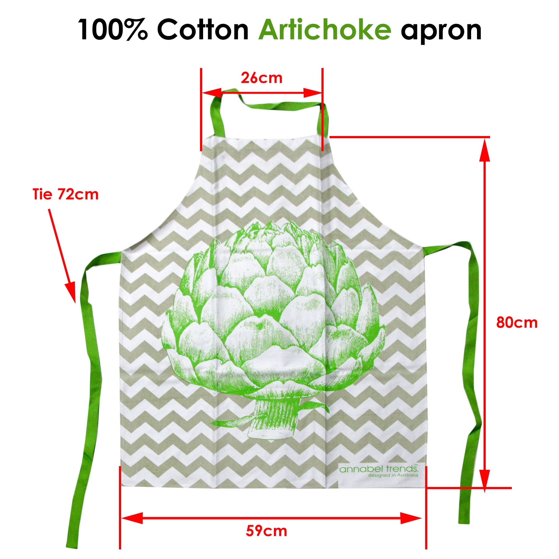 Protect your clothes in style with this Artichoke 100% Cotton Apron 59 x 80cm. It protects your clothes from stains and spills while cooking your favourite dish. This makes a great addition to your kitchen essentials. It features artichoke design printed in white, green, and grey colour tones. Made from soft and easy care 100% Cotton fabric.