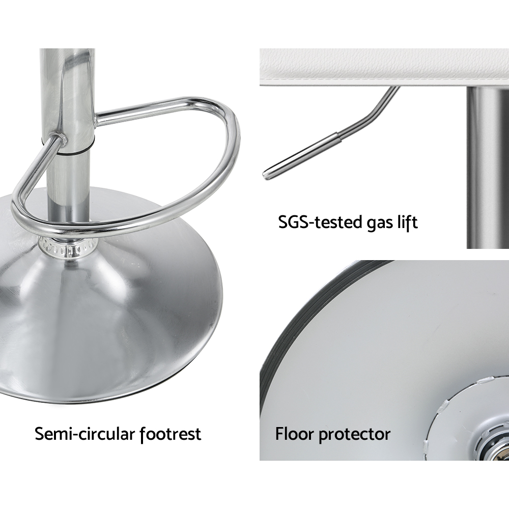 For a gorgeous contemporary addition to your modern home, the Artiss Wade Bar Stool is what you need for your kitchen island, bar or dining area. Crafted with care and finesse, the stool effortlessly blends with your existing décor, providing style and comfort. Sink into the luxuriously thick high-resistance foam enveloped in premium white PU leather that covers the smooth wave-styled seat. With a 360-degree swivel, you can effortlessly glide from one conversation to another. Adjust the height of the chair for the perfect fit at any counter or bar. The sturdy steel base with a semi-circular footrest provides the ultimate security, and the base is fitted with an anti-slip floor protector to keep the chair in one place and prevent scratches to your floors. Easy to clean and even easier to install, you can elevate your space right away with a set of Wade Bar Stools from Artiss.