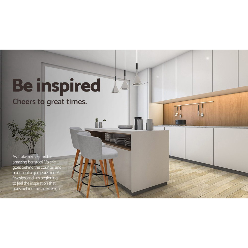 Artiss 2x Bar Stools Linen Padded Wooden Grey