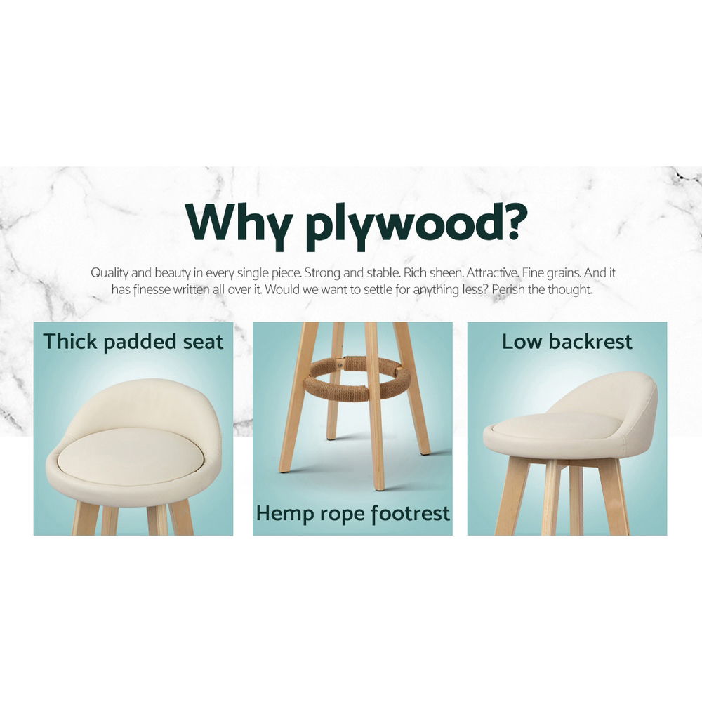 Artiss 2x Bar Stools Padded Leather Wooden Beige