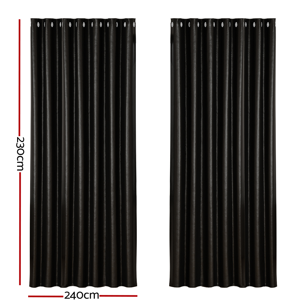 Artiss 2X Blockout Curtains Eyelet 240x230cm Black Shine
