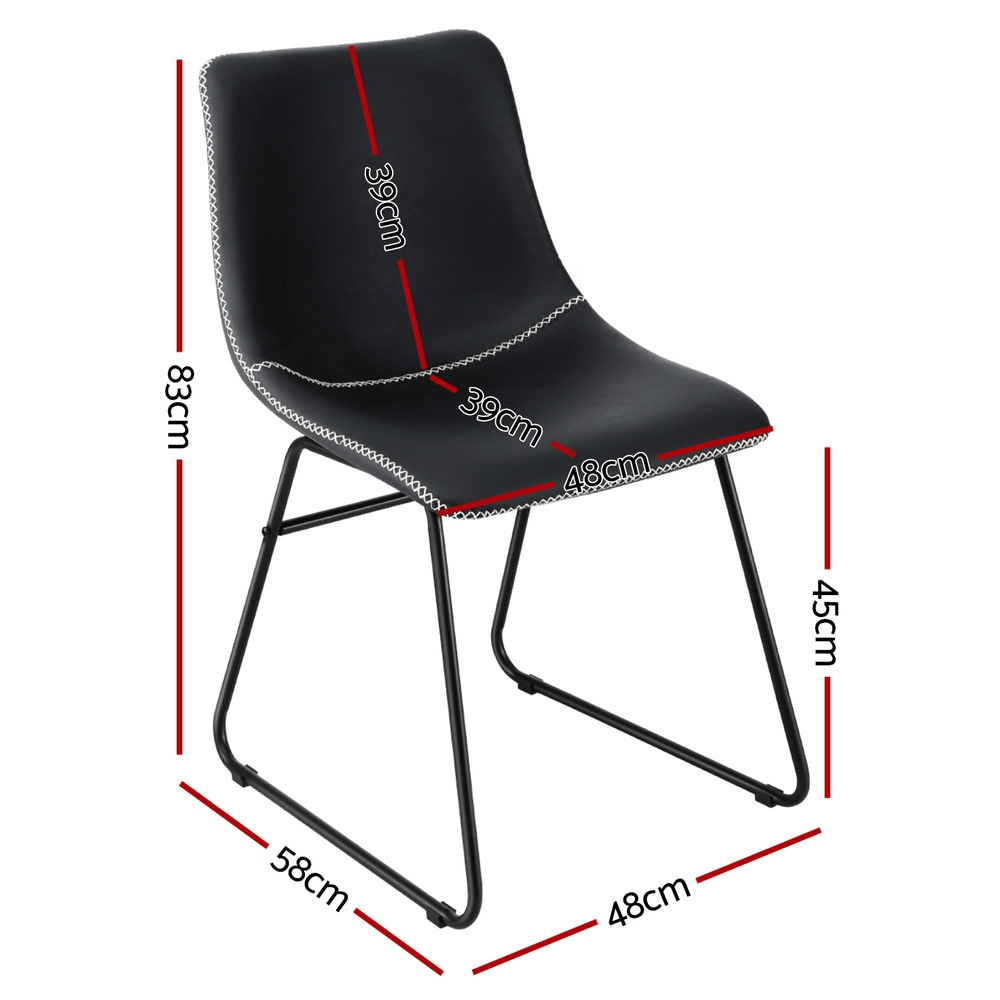 Artiss 2x Dining Chairs Retro PU Leather Kitchen Lounge Cafe Accent Chair Black