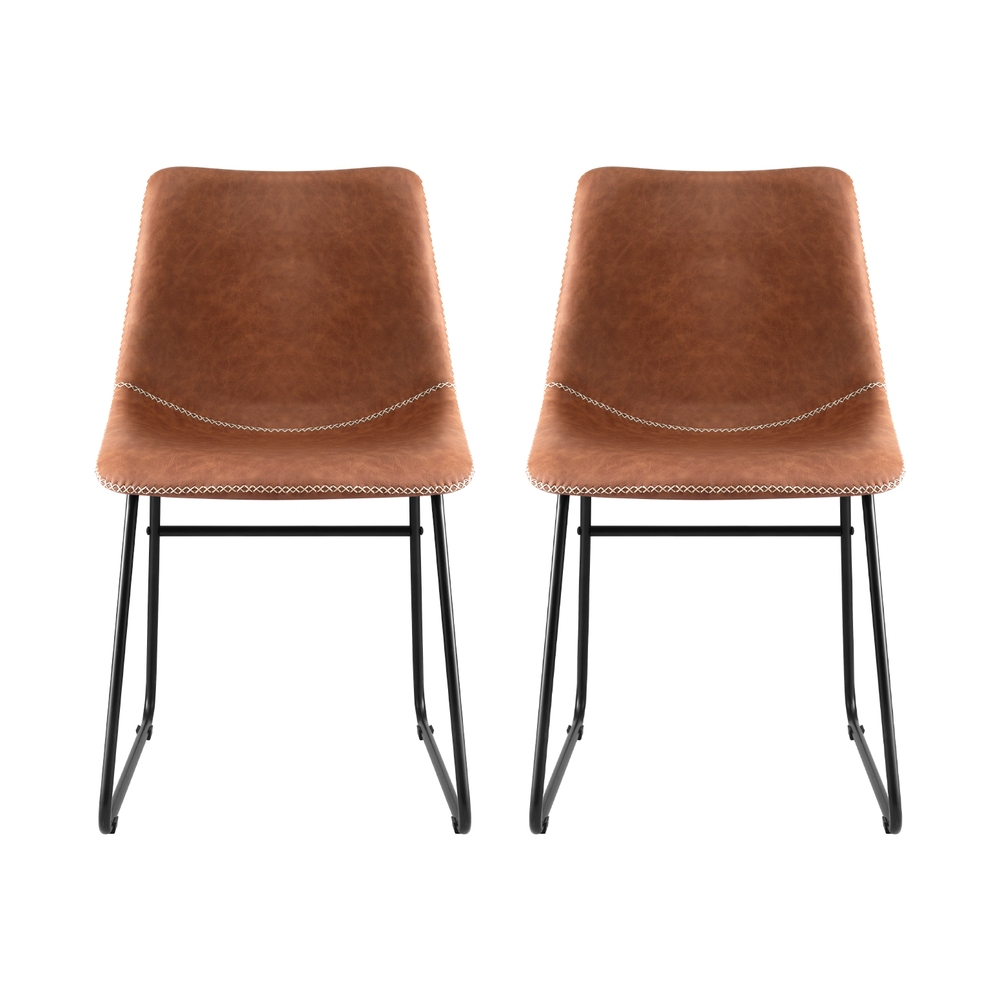 Artiss 2x Dining Chairs Retro PU Leather Kitchen Lounge Cafe Accent Chair Brown