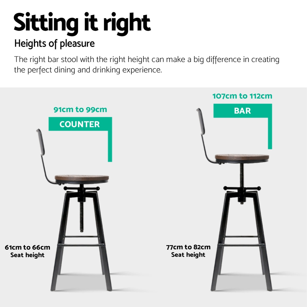 Artiss 4x Bar Stools Kitchen Dining Chairs Adjustable Wood Stool w/Backrest