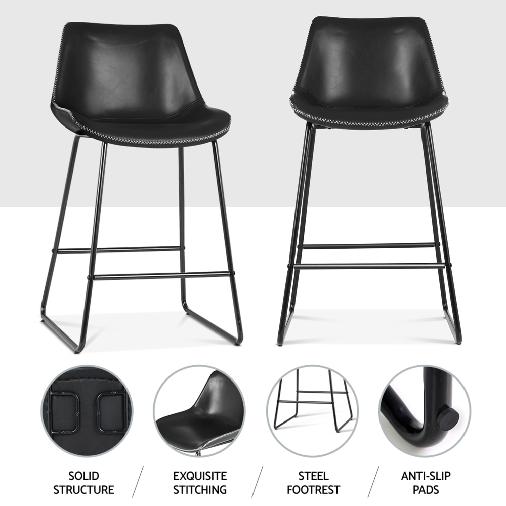 Artiss 4x Bar Stools Leather Padded Metal Legs Black