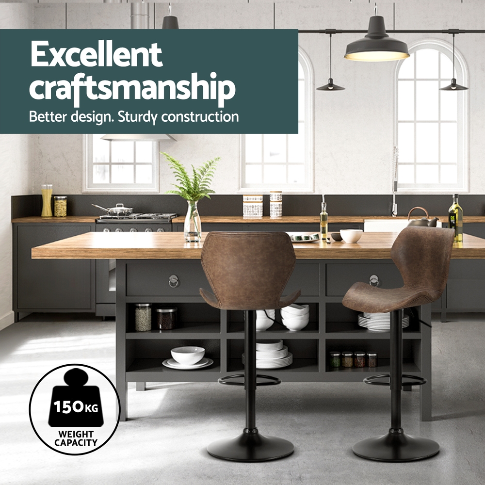 Not an ordinary piece of furniture but stands out in every aspect, whether it’s craftsmanship, style, upholstery, comfort, or quality that speaks for itself. If you’re after achieving an elegant vintage yet contemporary feel in your space, our Artiss’ Frawley bar stools with an elegant back and seat design are just perfect. They’re great for catchups over coffee with friends, a jam session with the band, or daily living. Our bar stools are uniquely designed that will make you want them in your space. You can style our Frawley bar stools anywhere, from living rooms to kitchen and the bar section, they will effortlessly fuse in any décor and lend an elegant vintage feel to your space. These bar stools can even be used as an impromptu seat when you need extra sitting space. Featuring a unique design with beautiful PU vintage leather upholstery, our bar stools have thick foam soft padded seats, sturdy powder-coated pedestal base, adjustable height with SGS-tested gas lift, and floor protector for ultimate stability and scratch-free floors. Their solid structure ensures longlasting use and superb durability. They also feature 360 degree rotatable seat so you can face any direction for ease of conversing with guests and family. Our Frawley bar stools make a timeless piece of furniture, and with two colour options, you can choose that best complements your space and suits your taste. Artiss’ Frawley bar stools would make a gorgeous addition to your space. Shop them today!