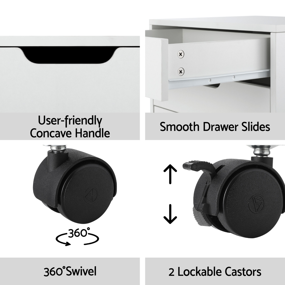 Artiss 5-Drawer Filing Cabinet Mobile Rolling Storage Cabinet Chest of Drawers Stand White