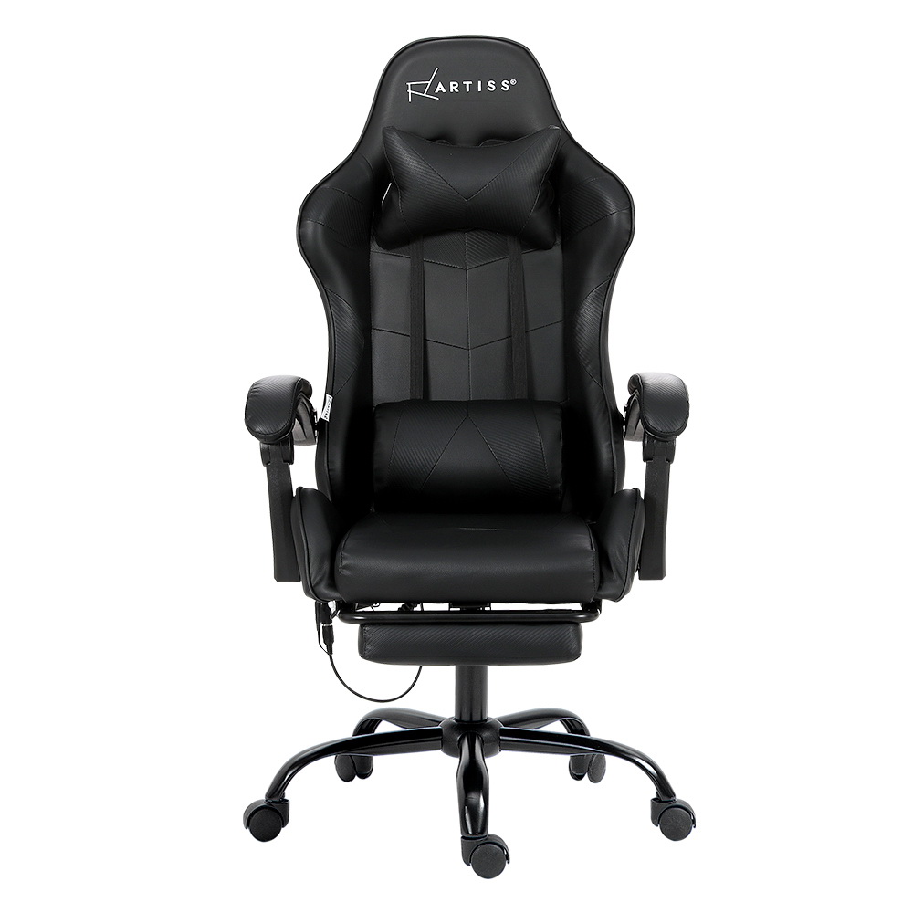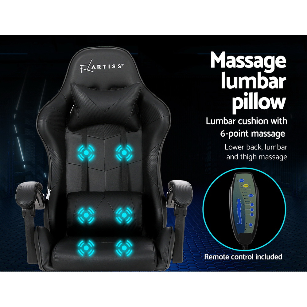 Artiss 6 Point Massage Gaming Office Chair Footrest Black