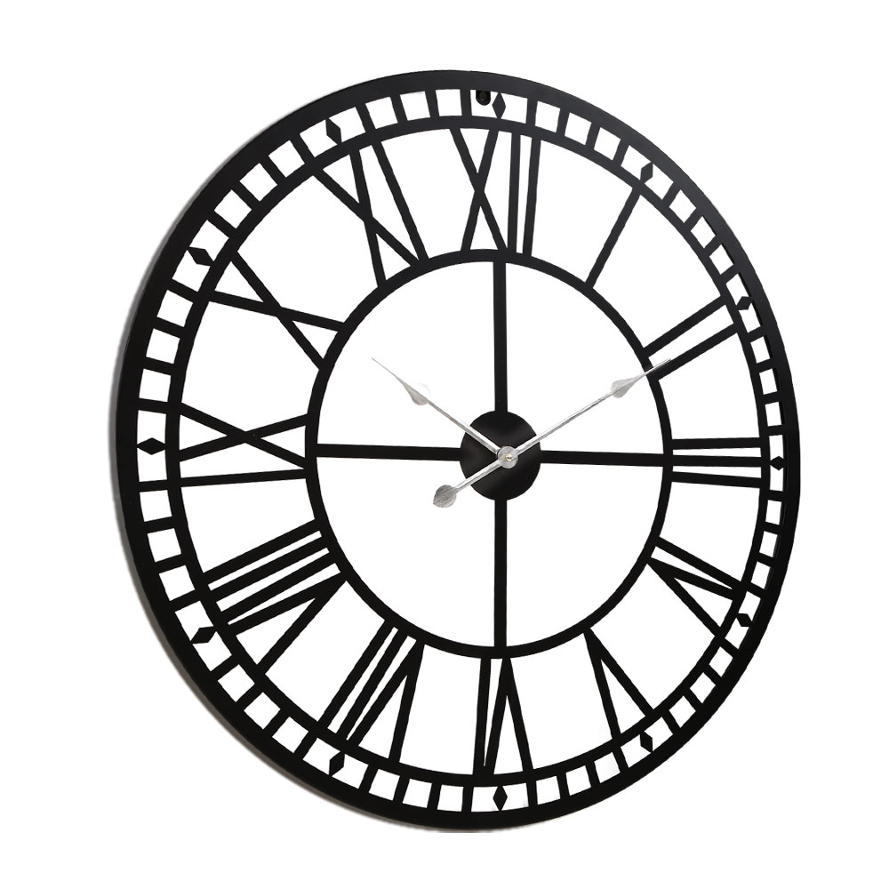 Artiss 60cm Wall Clock Large Roman Numerals Metal Black