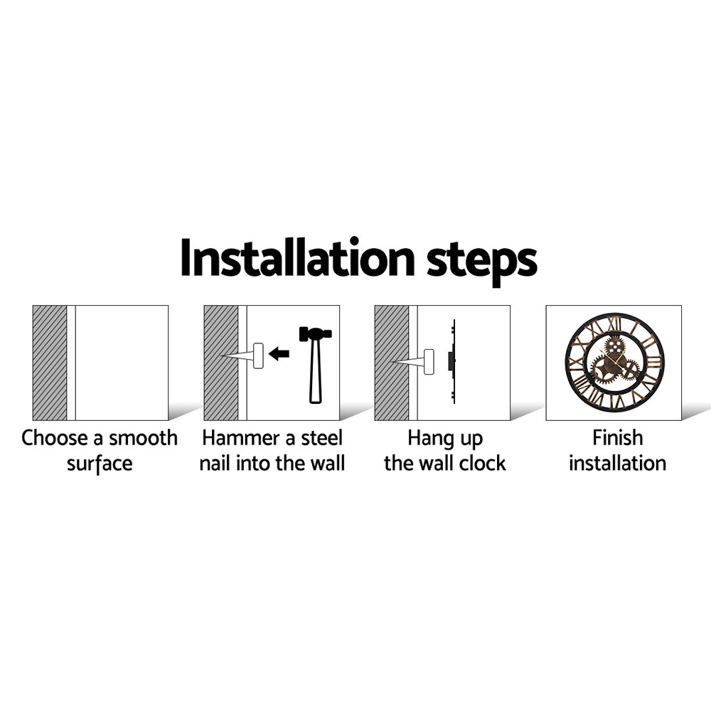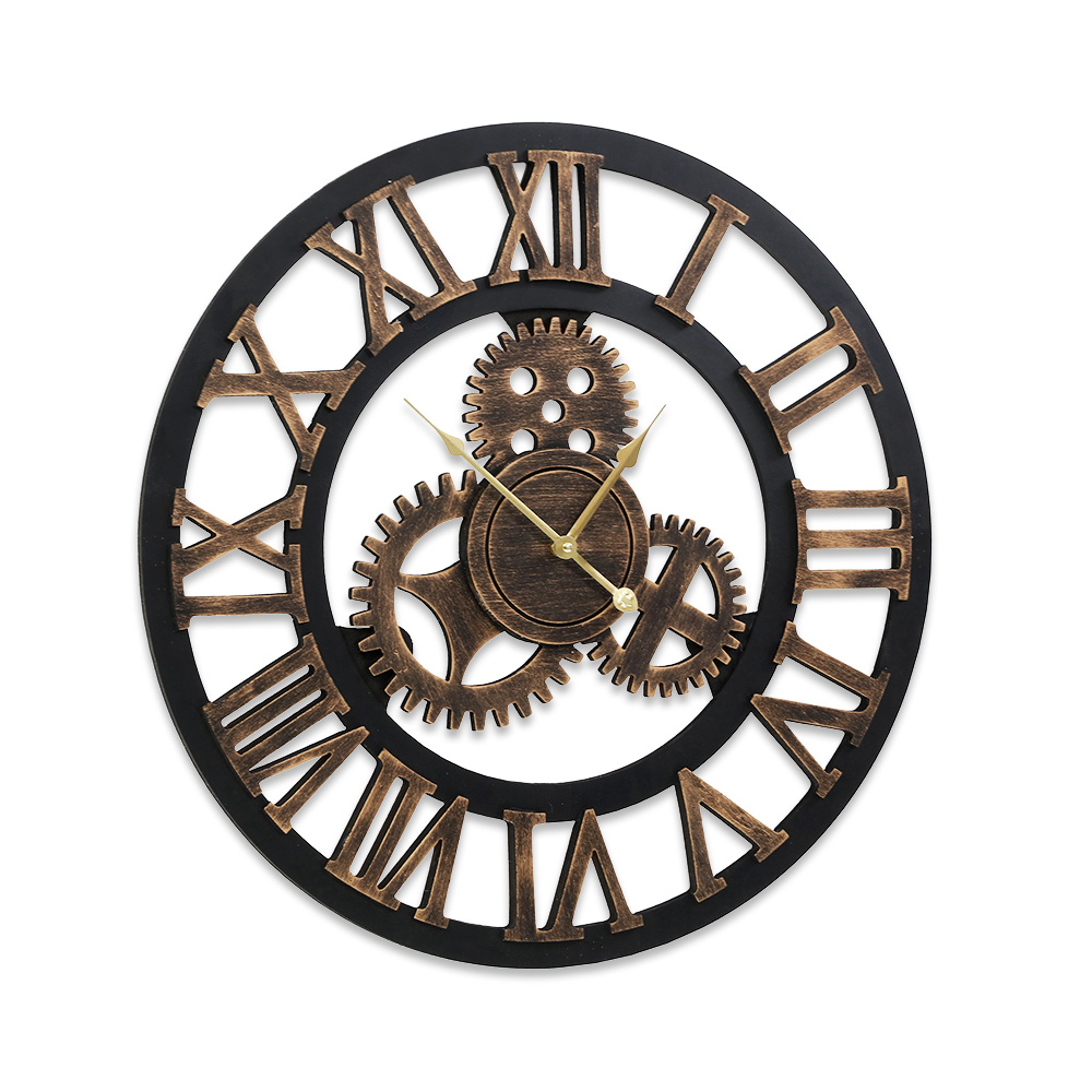 Add some timeless appeal to your home and keep time in style with our retro-style Wall Clock. The exquisite timepiece features steampunk design elements such as large cogwheels and a rustic finish. Its large 3D Roman numerals also further the look and make for an easy-to-read clock face with sophisticated aesthetics. The accurate time teller is easy to set up, requiring only one AA battery to get it moving (battery not included). Most importantly, our wall clock is crafted from quality eco-friendly and non-toxic materials, with the hands being made from metal for longlasting durability. Place it in your living room, dining room, bedroom or even your office for a retro makeover.