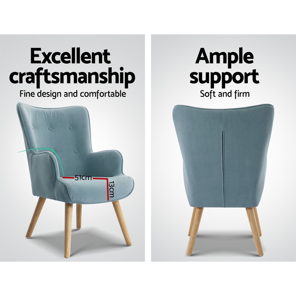 Artiss Armchair Set with Ottoman Blue Lansar