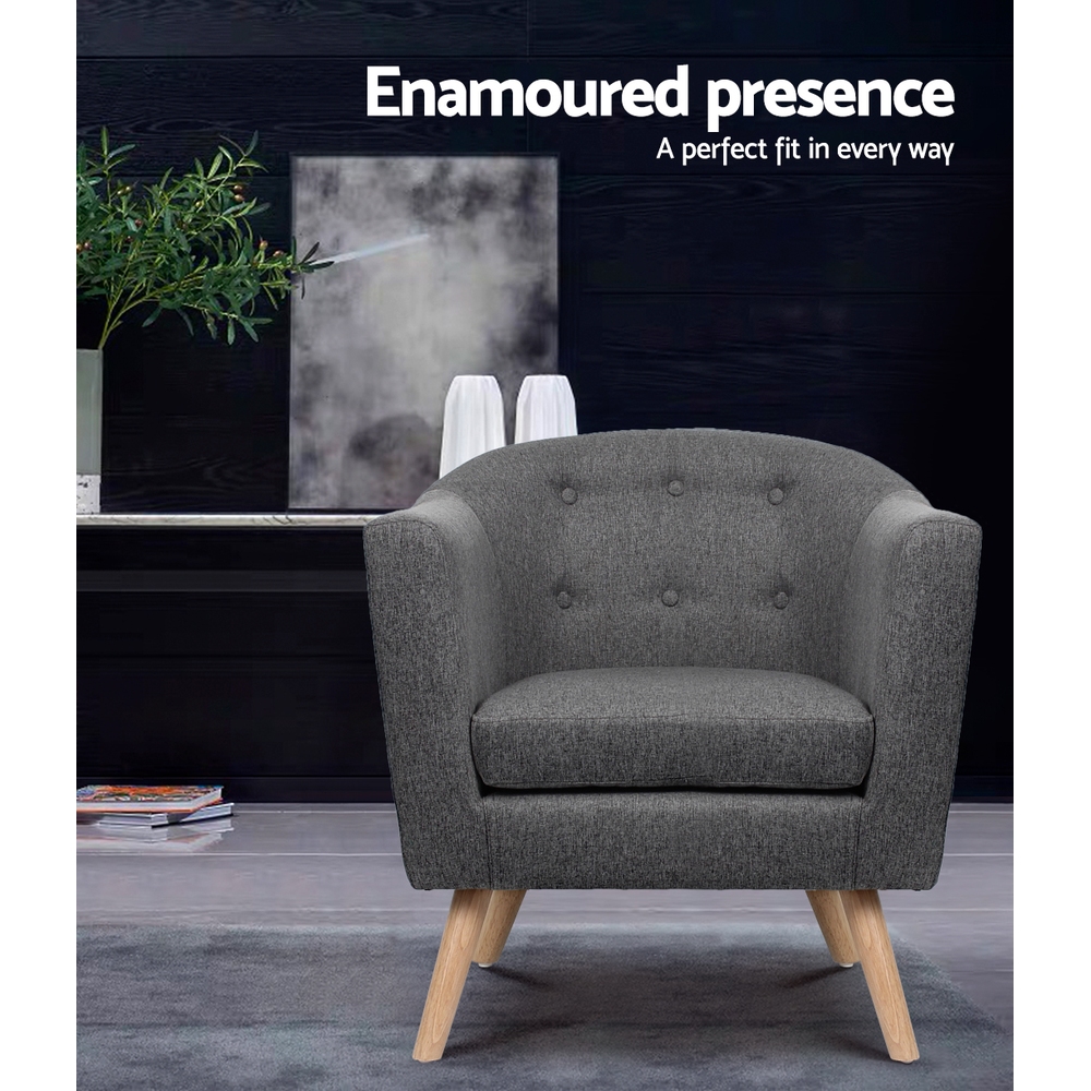 Upholstered in quality faux linen fabric, the Adora Armchair is a full size chair with generous seating space. The extra thick foam padding ensures ultimate comfort with exceptional support while the tufted backrest adds a touch of finesse to the overall character of the armchair. Together with a reinforced wooden frame and sturdy rubber wood legs, the Adora Armchair is guaranteed to stand up to durable use for many years to come. Not least, with its neutral tones, the Adora Armchair is a seamless match for any home décor.