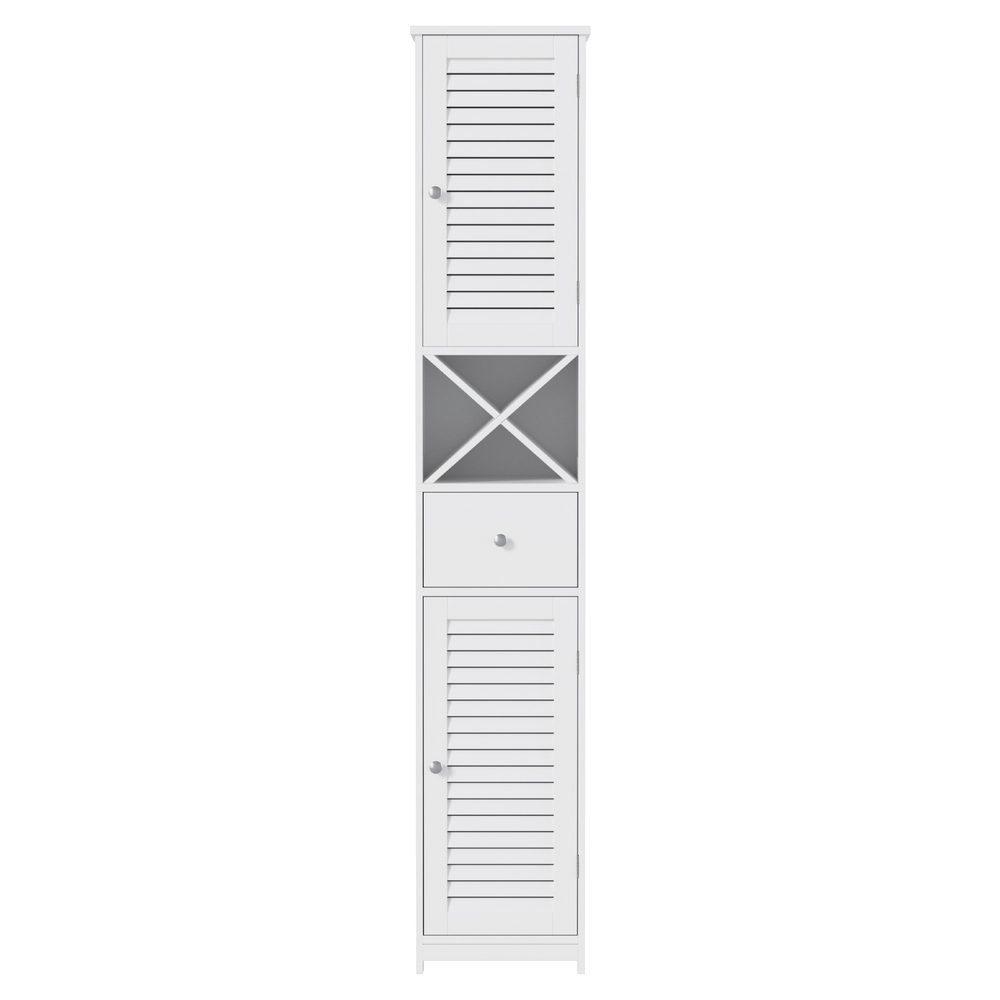 This versatile storage cabinet offers smart organisation beyond the bathroom. Its tall, slim profile fits perfectly in corners and tight spaces, while the adjustable shelves and unique X-shape shelf adapt to all your storage needs. In the bathroom, it neatly organises towels and toiletries; in the living area, it stores books and wine bottles; in the entryway, it keeps essentials tidy. The painting finish ensures durability in humid conditions, and the elegant louver doors add stylish design. This cabinet combines functionality with contemporary design for multiple living spaces.