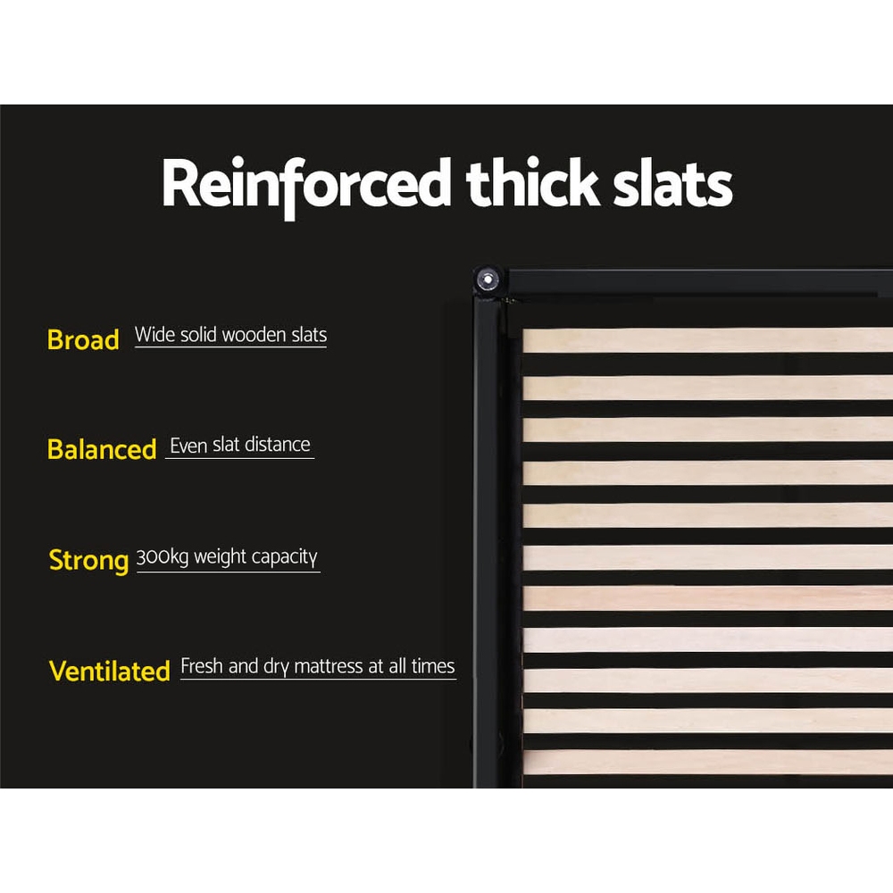 Our Toki Gas-Lift Bed Frame combines exquisite style with great storage practicality. The frame is built with reinforced steel construction while the wooden arched slat frame helps to distribute weight evenly across the framework. Heavy-duty connectors are used throughout the frame to increase its durability and reliability with long -term robust use. And for an elegant finish, the bed frame is padded with high-density foam and upholstered with premium linen fabric. Best of all, the bed frame comes with a gas-lift storage system where you will find acres of space underneath the slatted frame to store all your bedroom and home essentials. And if so desired, the bed frame can be matched with our complementary bed head for a complete look. The bed frame is designed to fit standard Australian-sized mattress.
