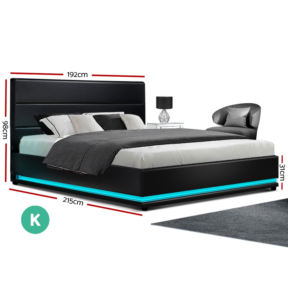 Artiss Bed Frame King Size LED Gas Lift Black LUMI