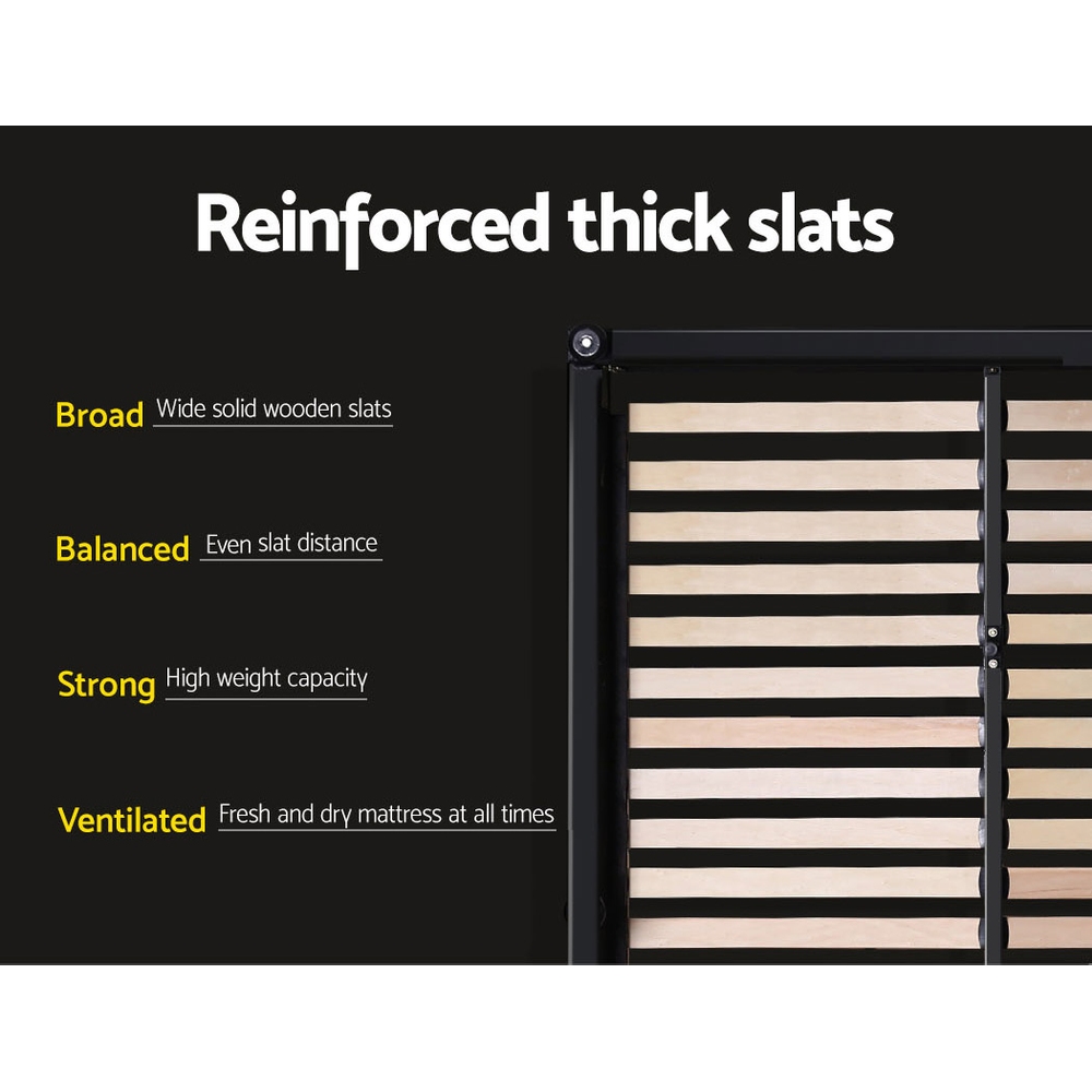 When is a bed more than a bed? When it uses a Artiss Nino gas lift bed frame. On the outside, the bed frame looks like just any other quality bed frame. Beautifully padded with generous foam and covered in premium faux linen fabric. Strong steel frame with high grade steel centre rails and arched slat base. Large and comfortable headboard. But with one easy gas lift of the bed base, the bed frame becomes an instant storage area with acres of space for your bedding essentials. Simply store your extra pillows, bed sheets, cushions and more in the storage compartment and hide them away for the season. Have more and expand your home storage capacity with just a lift of your hands with the Artiss Nino gas lift bed frame.
