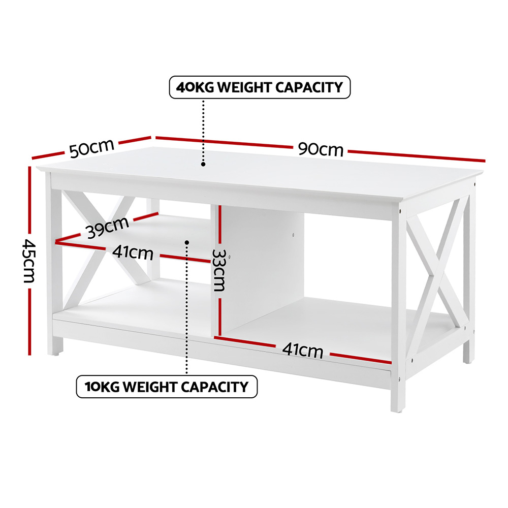 Artiss Coffee Table Storage Shelf White