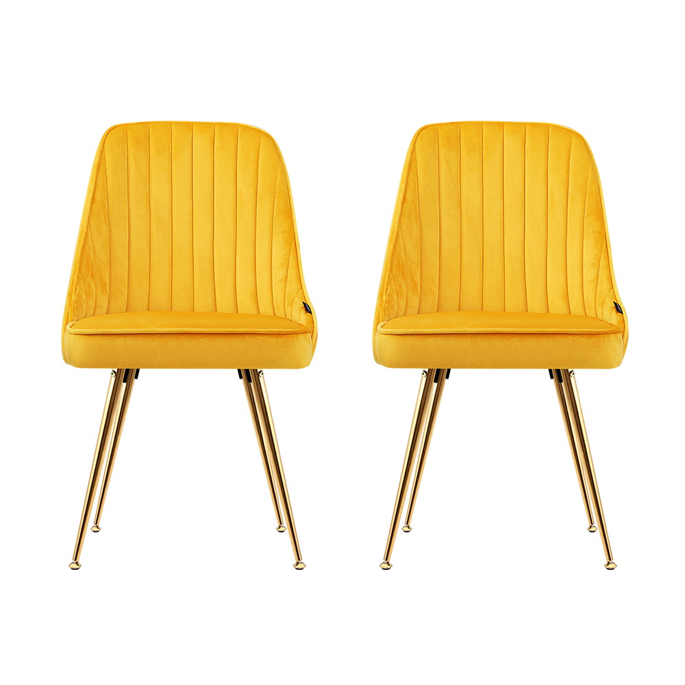 Artiss Dining Chairs Set of 2 Velvet Channel Tufted Yellow