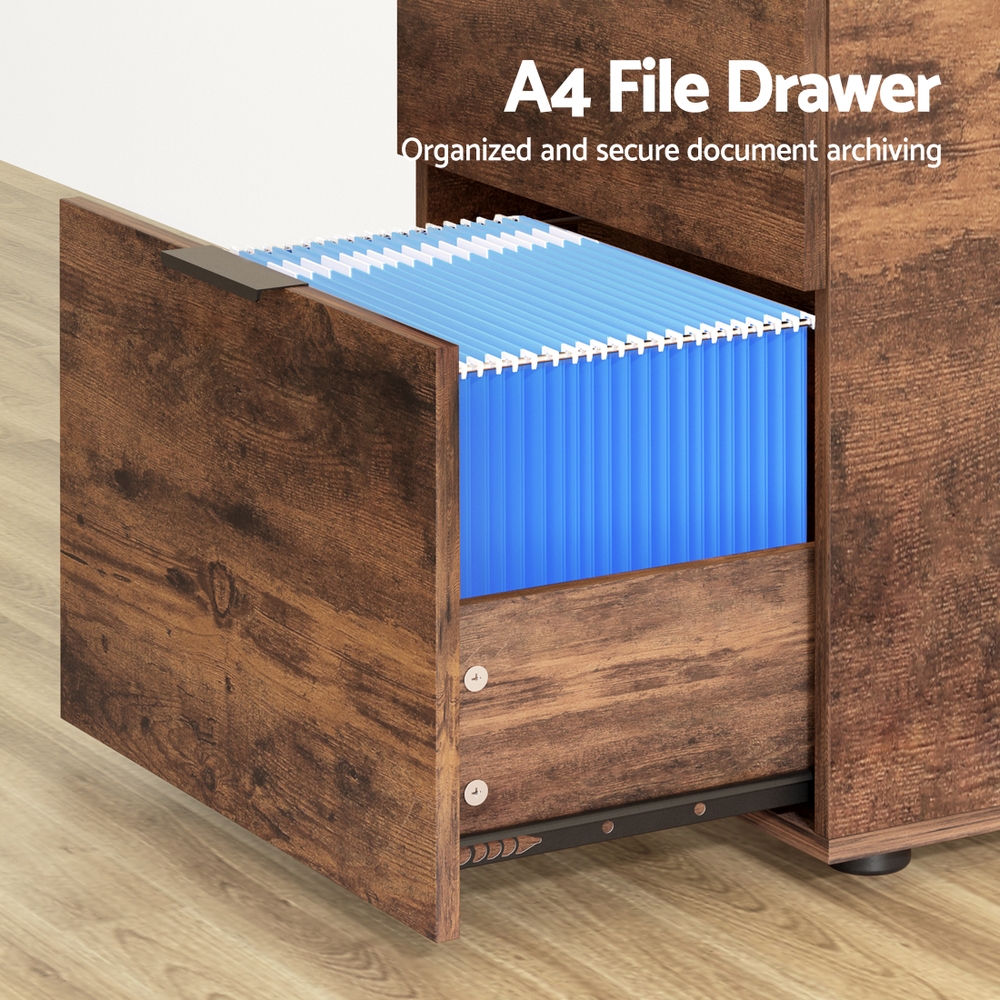 Artiss Filing Cabinet Files Storage Office Shelves File Organiser Rustic Brown 2 Drawer