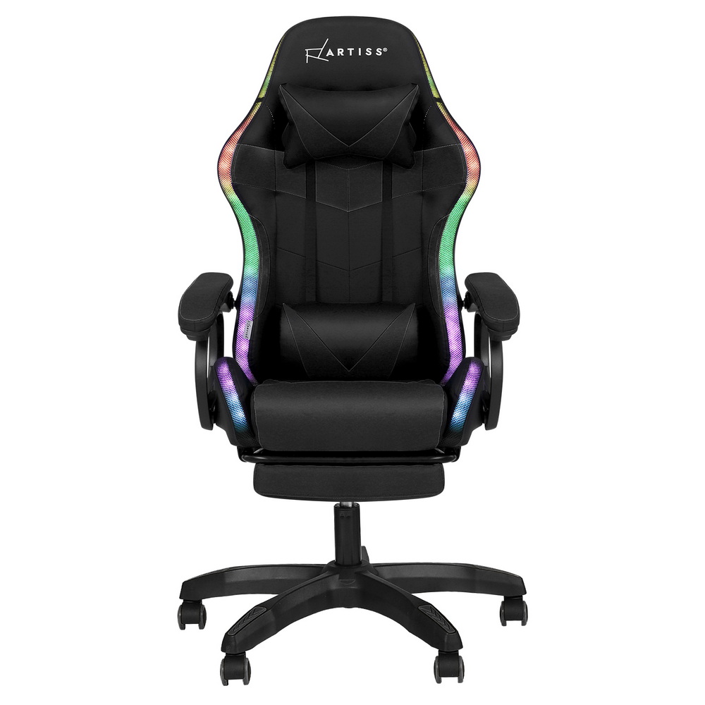 Artiss Gaming Office Chair 12 RGB LED Massage Computer Work Seat Footrest Black