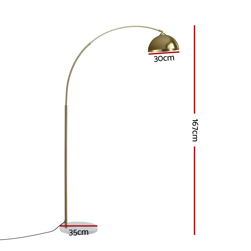 Artiss Modern Arched Floor Lamp Gold Brass Standing Heavy-Duty Marble Base for Living Room Bedroom